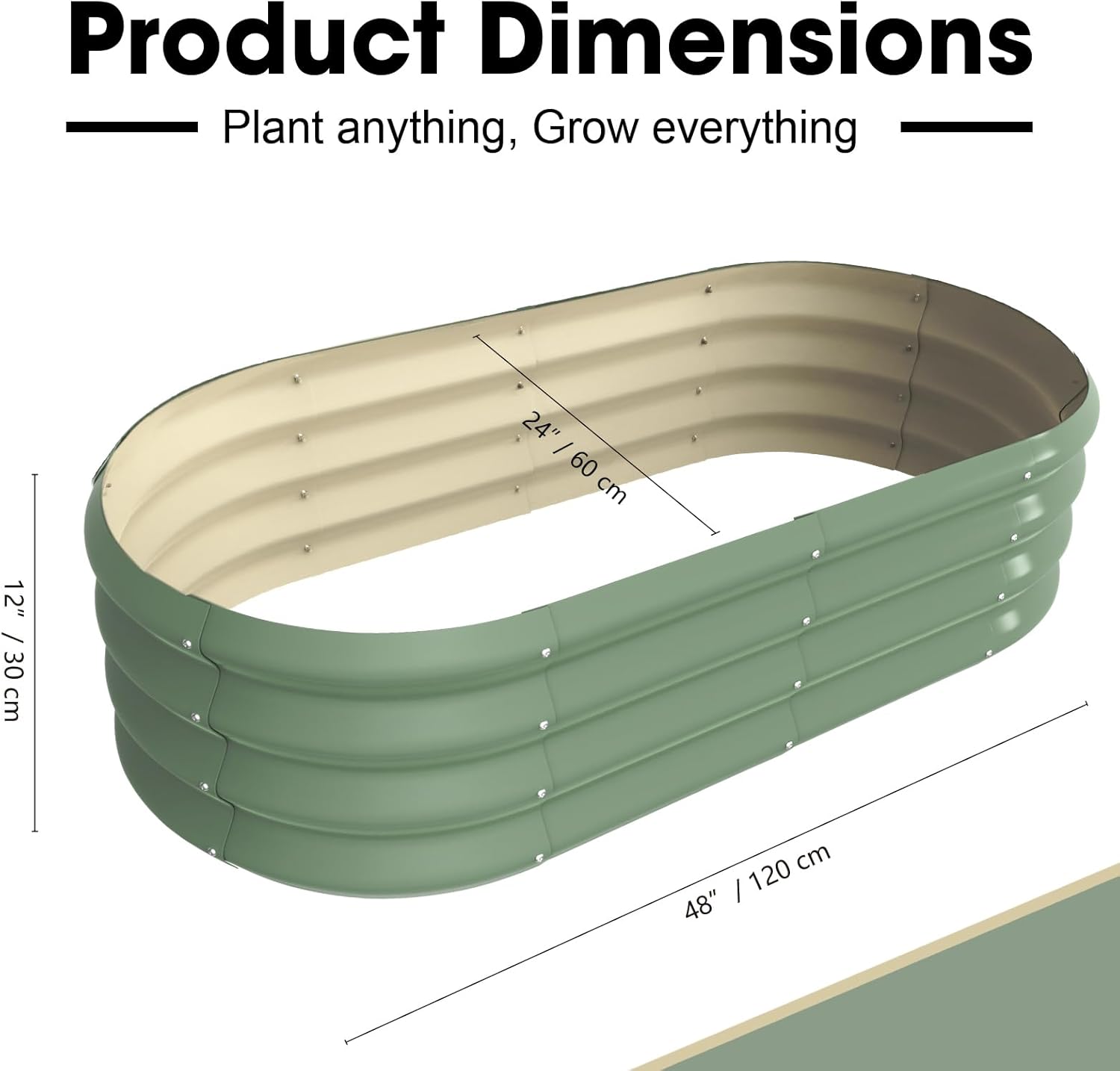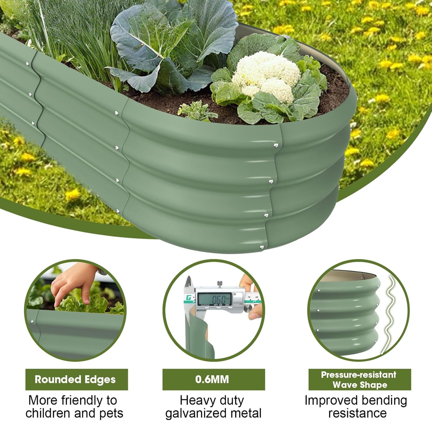 4x2x1ft Oval Galvanized Raised Garden Bed Outdoor 9-in-1 Large Metal Modular Planter Box Raised Beds for Gardening,Vegetables,Fruits,Flowers & Herbs (Green)