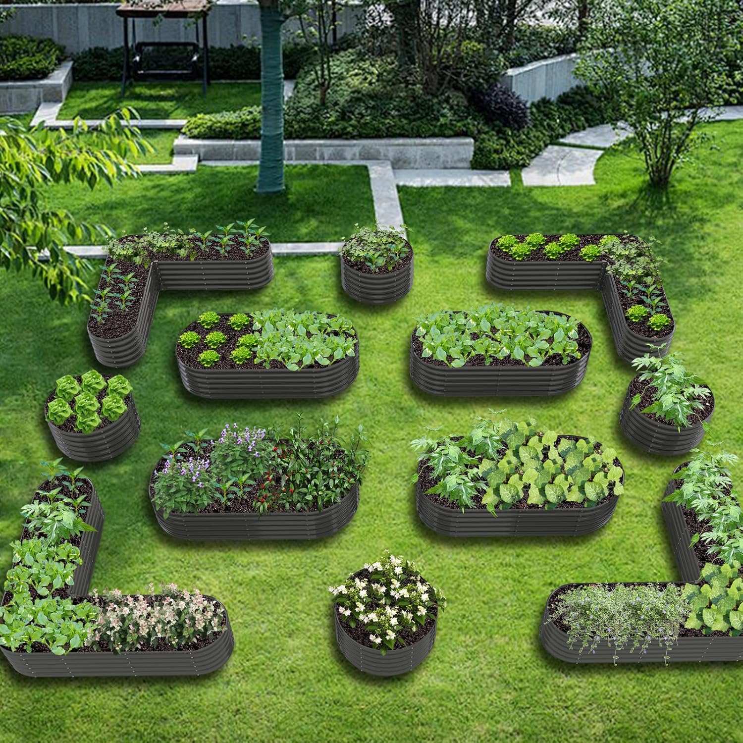 A ANLEOLIFE 12-Pack 4X4X1.5ft & 6X2X1.5ft & 81x81x18 in Deep Root Galvanized Raised Garden Beds Outdoor for Planting Vegetables Flowers Herb, Quartz Grey