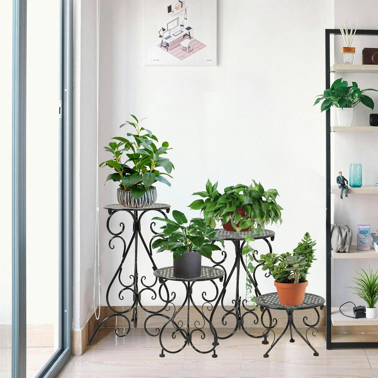 4-Pack Metal Plant Stand for Indoor Outdoor, Heavy Duty Flower Pot Stands for Multiple Plants, Rustproof Iron Planter Holder Display Shelf for Patio Home Garden Porch Balcony(Black)