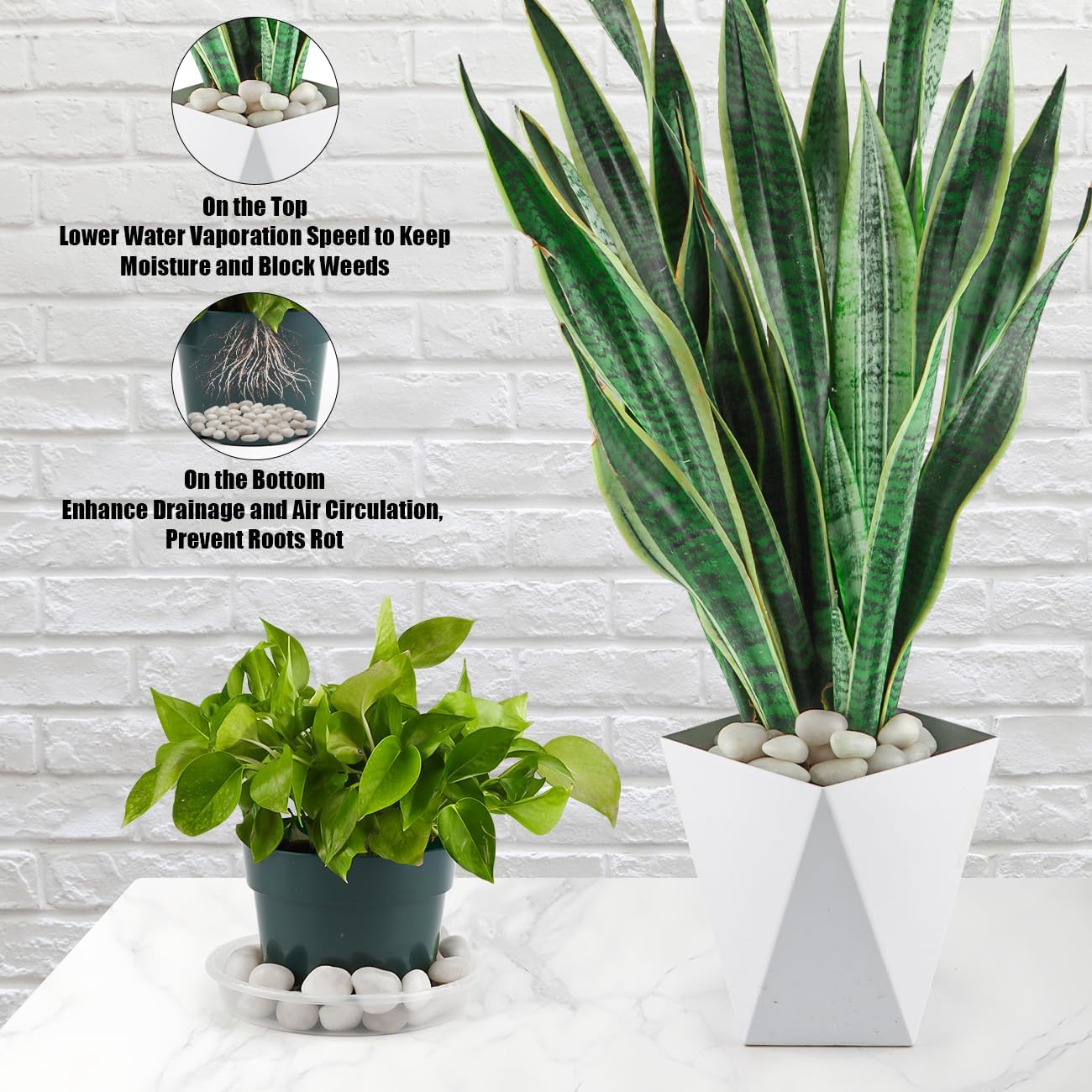 - Benefits For Plants: Pebble tray for plant humidity. These small pebbles for indoor plant keep soil moisture and protect soil from weeds, being dug up by house pets
