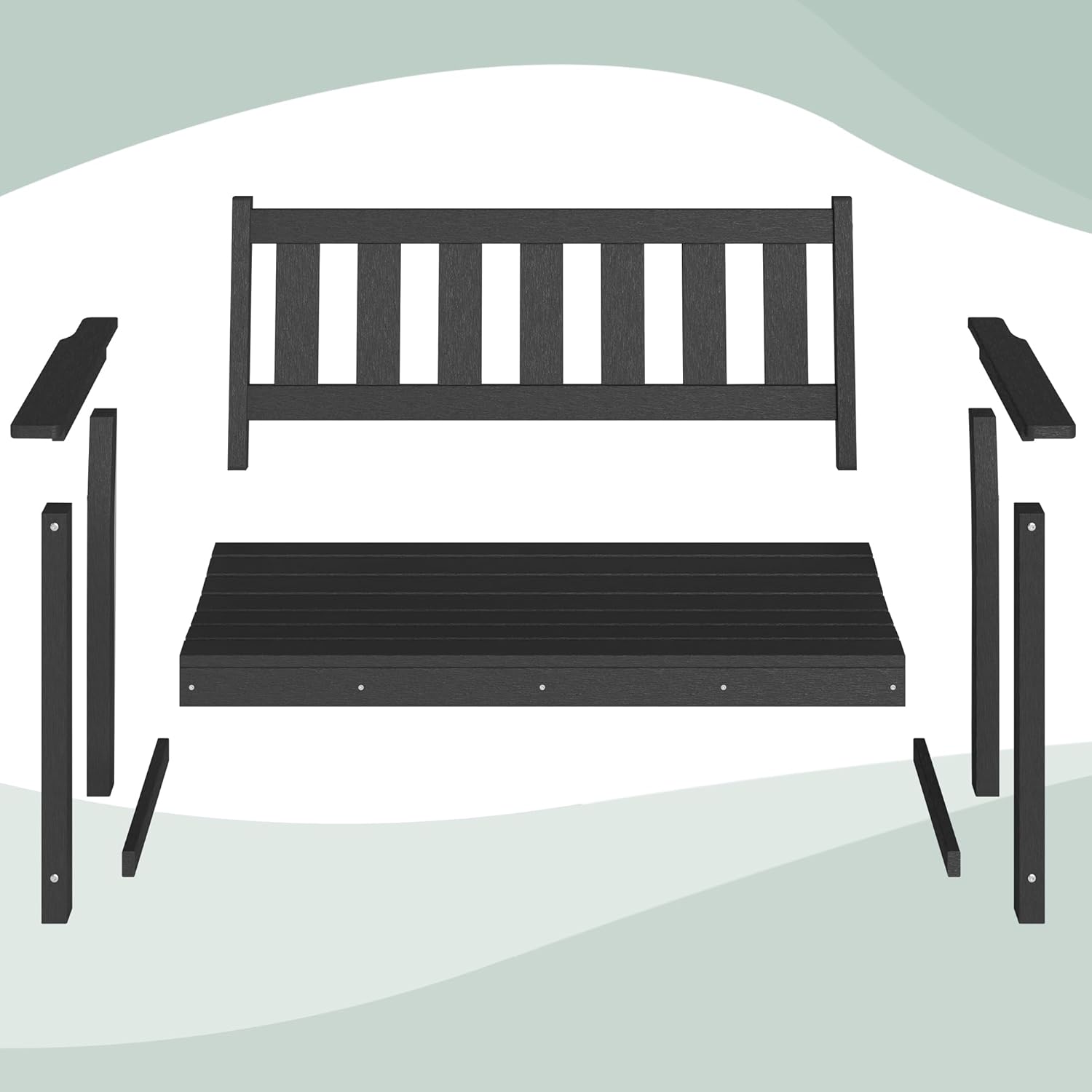 - Durable and Recyclable: This outdoor bench is made from 100% recyclable HDPE plastic, miming wood's natural appearance using advanced technology. Unlike traditional wooden benches, the HDPE material offers superior stability and durability, resisting long-term exposure to the elements and heavy impacts without sustaining damage.