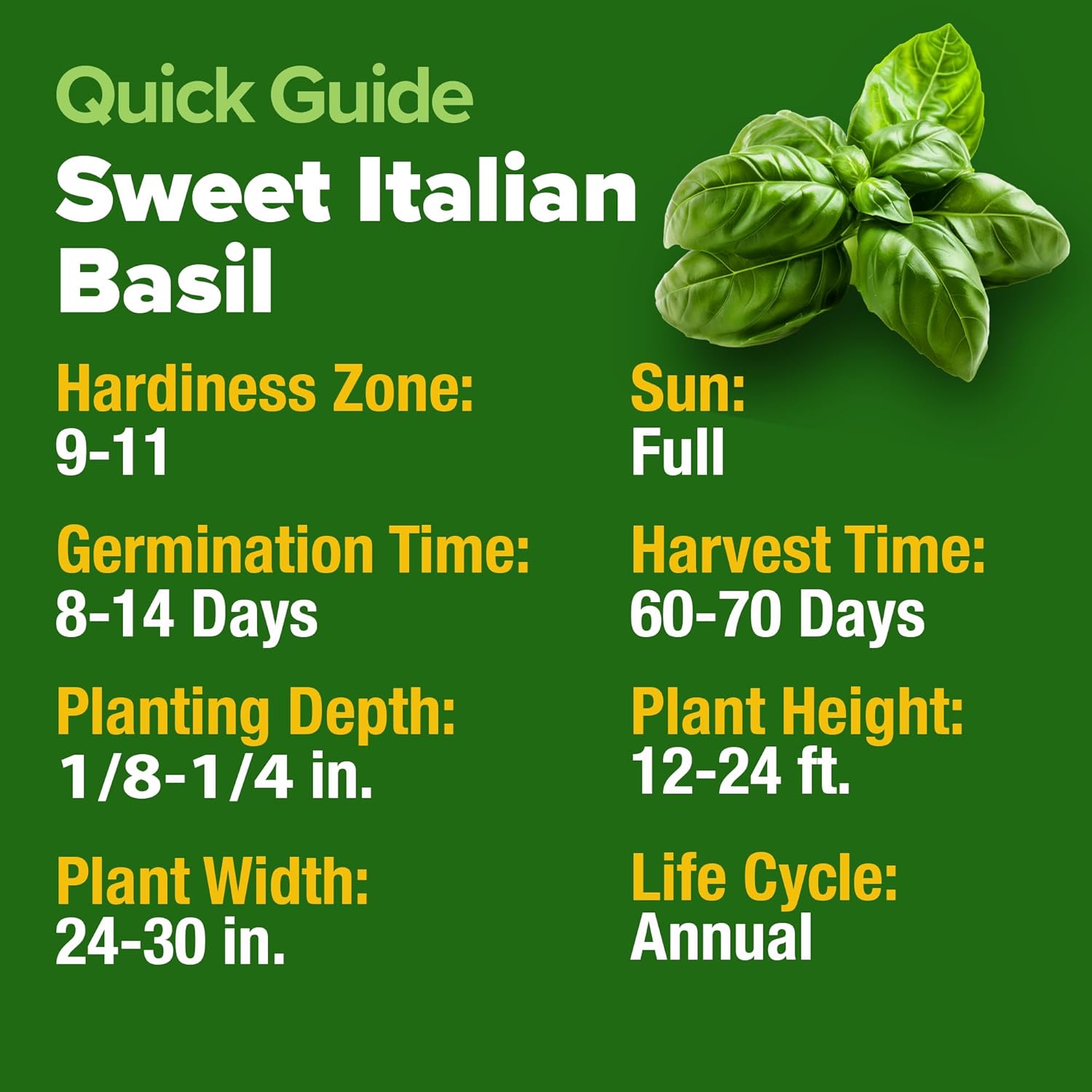 - QUICK GERMINATION AND EASY TO GROW β Our basil seeds for planting are perfect for beginners, featuring a high germination rate in just 5-10 days. Plant these sweet basil seeds indoors or outdoors at 70-85Β°F and watch them thrive in both garden beds and containers. With fast-growing results, expect a harvestable basil plant in 60-90 days, adding fresh herbs to your kitchen effortlessly. Ideal for those looking to cultivate herb garden seeds with reliable, vigorous growth.