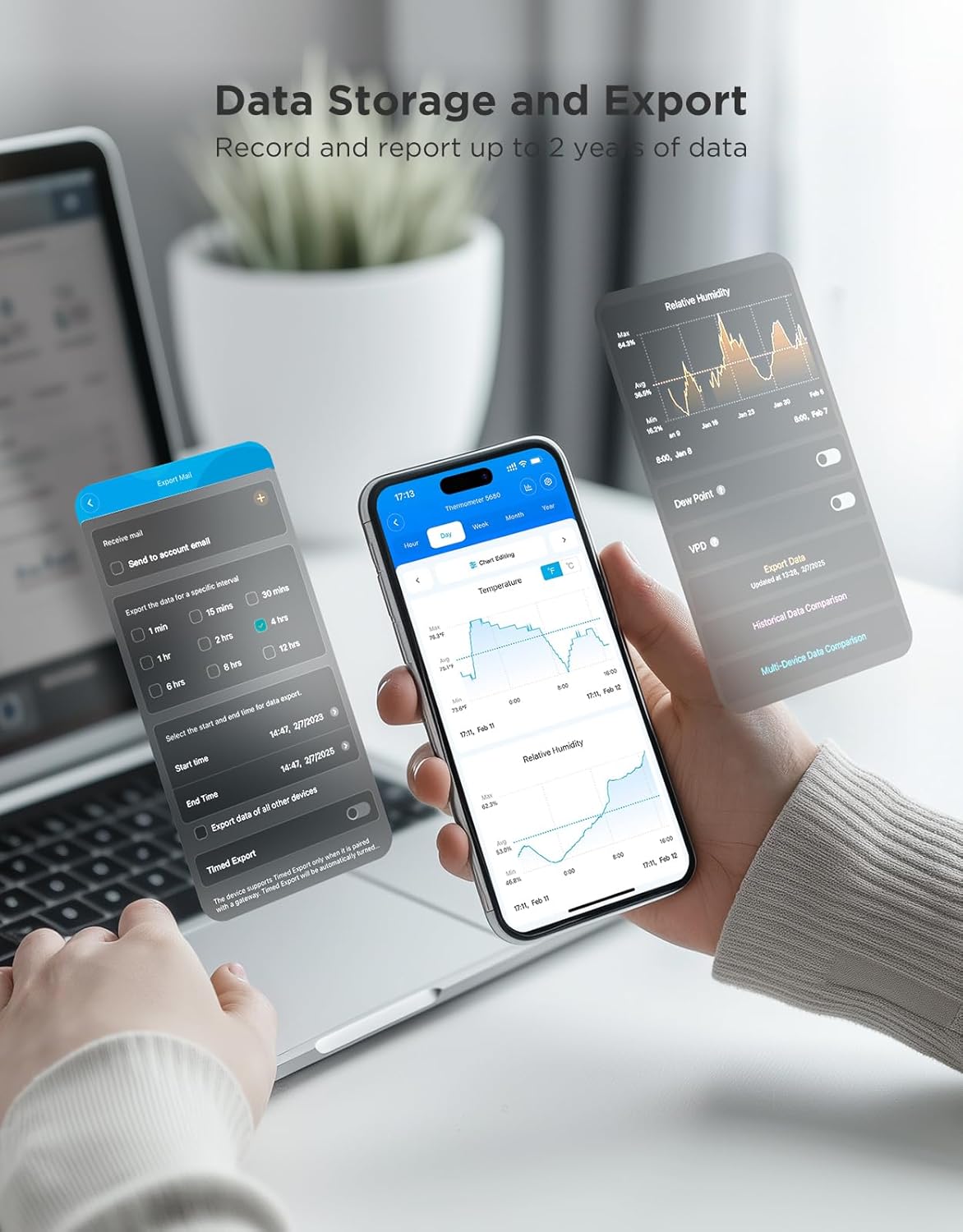 - Long-Lasting Battery Life: This smart temperature and humidity monitoring device is extremely energy-efficient. Capable of operating for up to 2 years with just 2 AAA batteries, meaning you don't have to worry about frequent battery replacements.