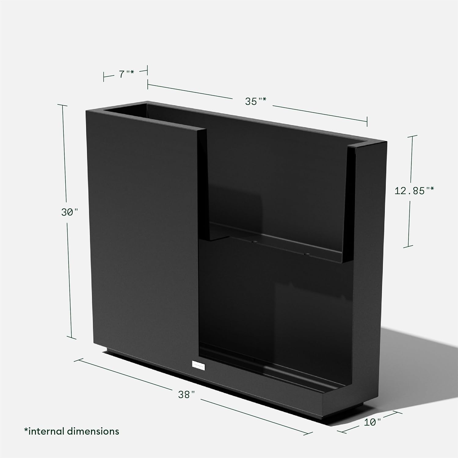 - DIMENSIONS & DETAILS: This double-walled planter’s exterior dimensions measure 30” in Height, 10” in Width, 38” in Length. With the removeable insert bucket installed, the interior dimensions measure 12.85” in Height, 7” in Width, 35” in Length. It comes fully assembled for easy use
