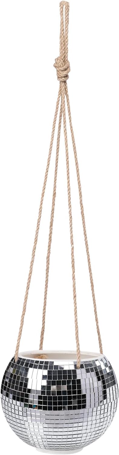 Hanging Planter Mosaic Garden Pot Small Flower Pot for Indoor Plant Disco Ball Hanging Planter with Drainage Sliver Check