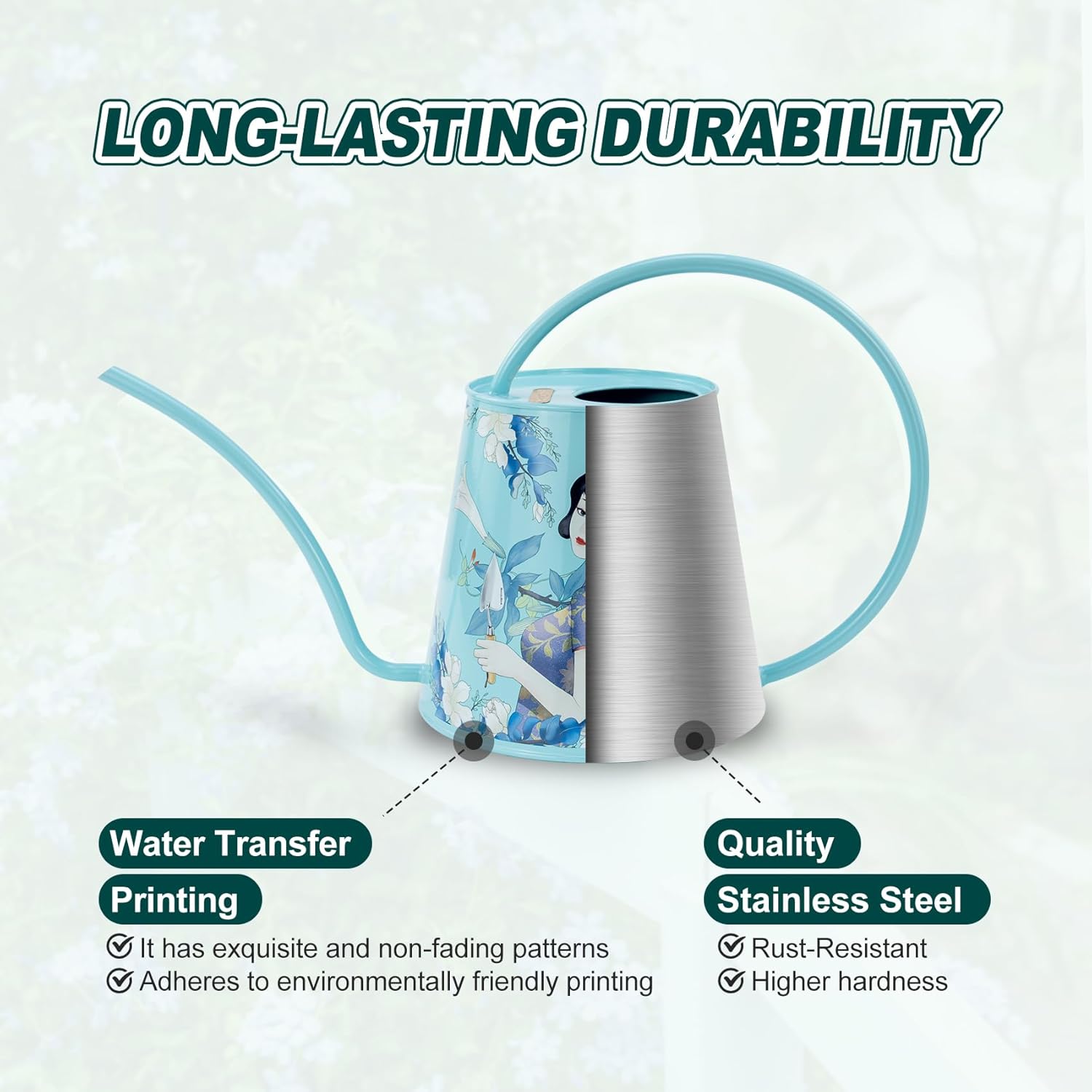 Berry&Bird House Plants Watering Can - Indoor & Outdoor 1/2 Gallon Stainless Steel Water Can with Long Spout Garden Decoration for Flower Bonsai Succulent Gardening Large Water Bottle (2L, Magnolia)