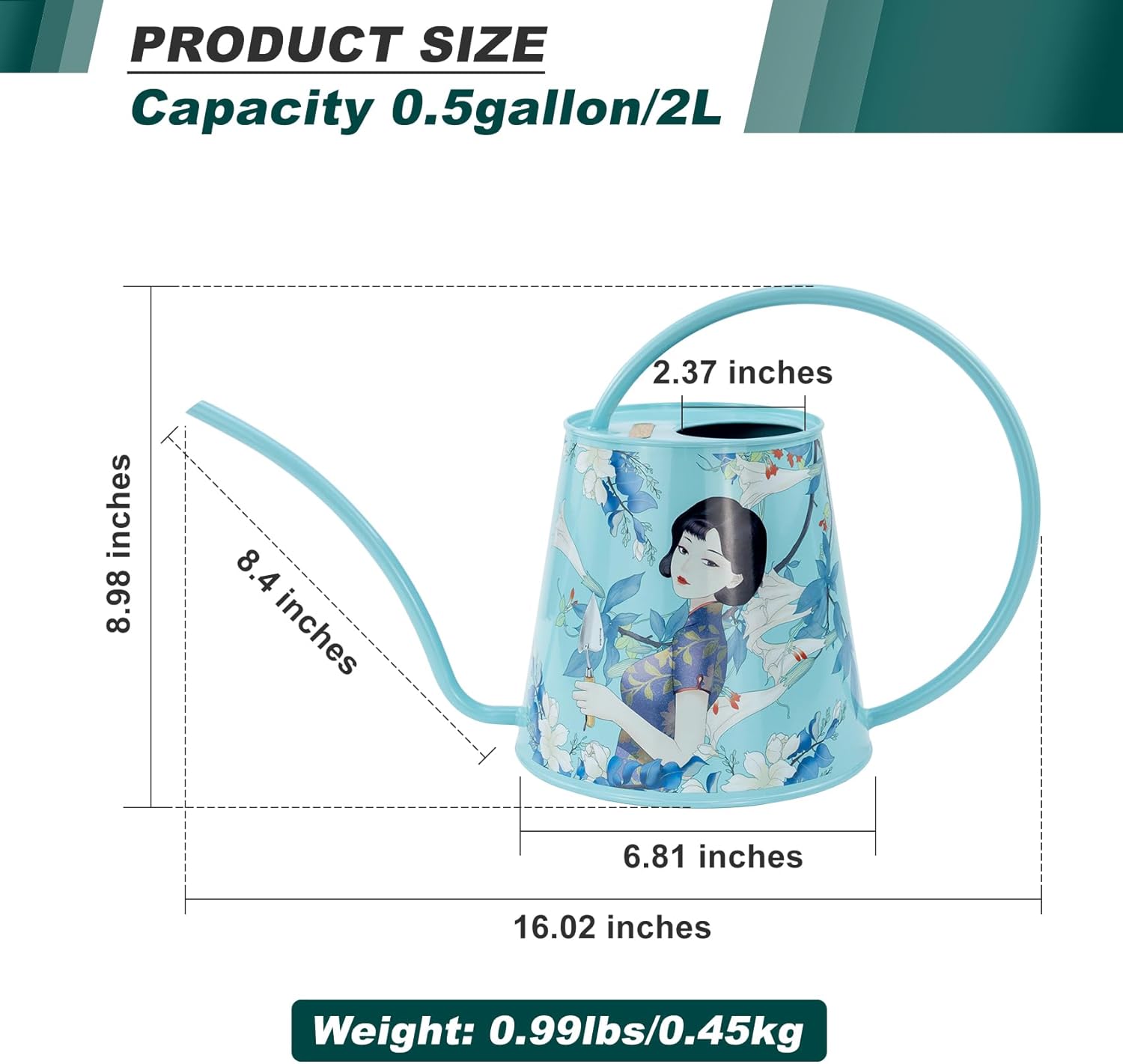 - PERFECTLY INDOOR PLANT WATERING CAN: The houseplants watering can has a large water storage capacity of 2L/68oz, you can water all your indoor plants at once which can reduce the trouble of frequent irrigation. The curved handle with no sharp edges makes it easy and comfortable to carry around one-handed even full. This water can is more satisfied with your daily gardening needs.
