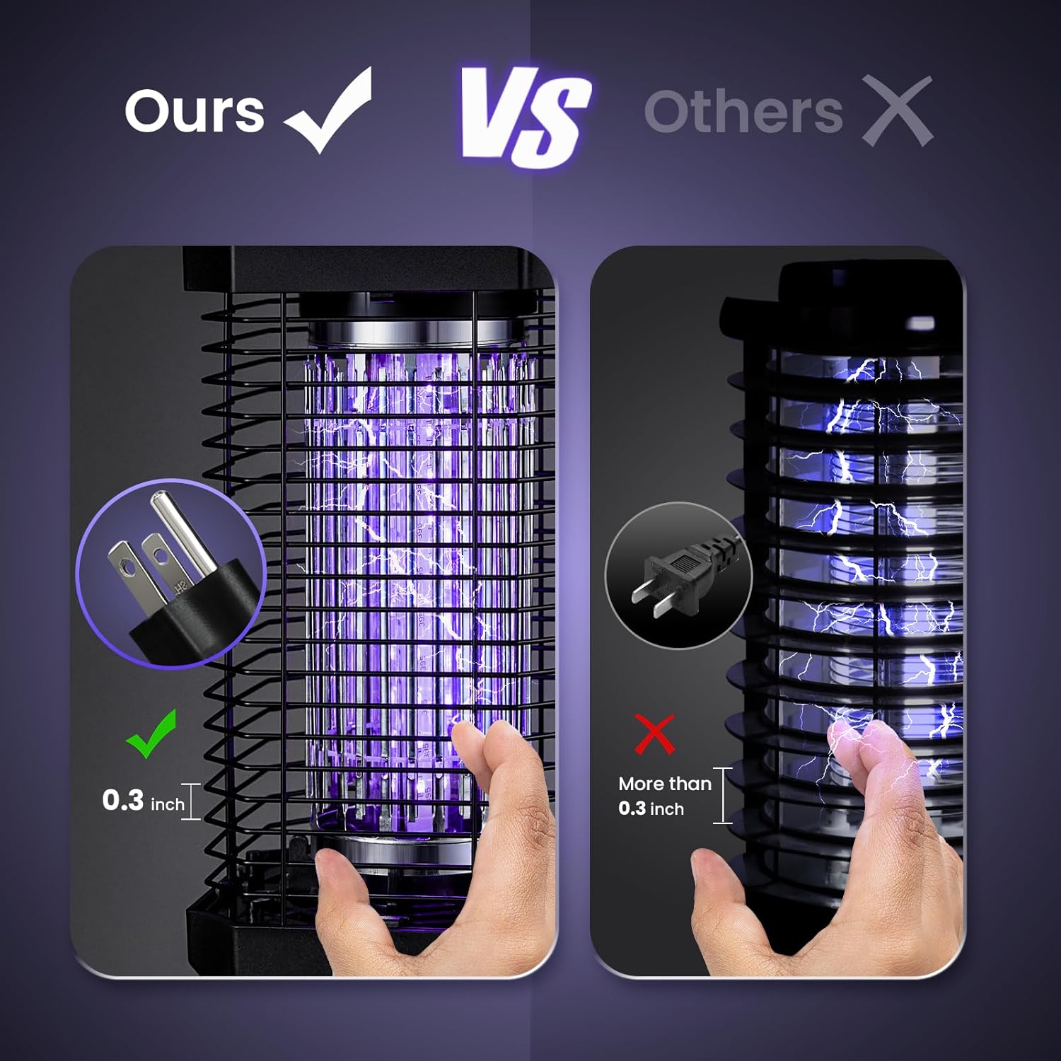 - Instant 2800V Shock & Dual-Chip LED Attraction: Eliminate mosquitoes, flies, and bugs instantly with 2800V high-voltage grids and dual-chip LED lamps which could emit 365nm & 395nm wavelengths precisely attract mosquitoes and bugs. This LED bug zapper indoor/outdoor scientifically lures pests through 2 kinds of UV wavelengths proven to mimic human body heat, ensuring precision attraction for mosquito killer efficiency.