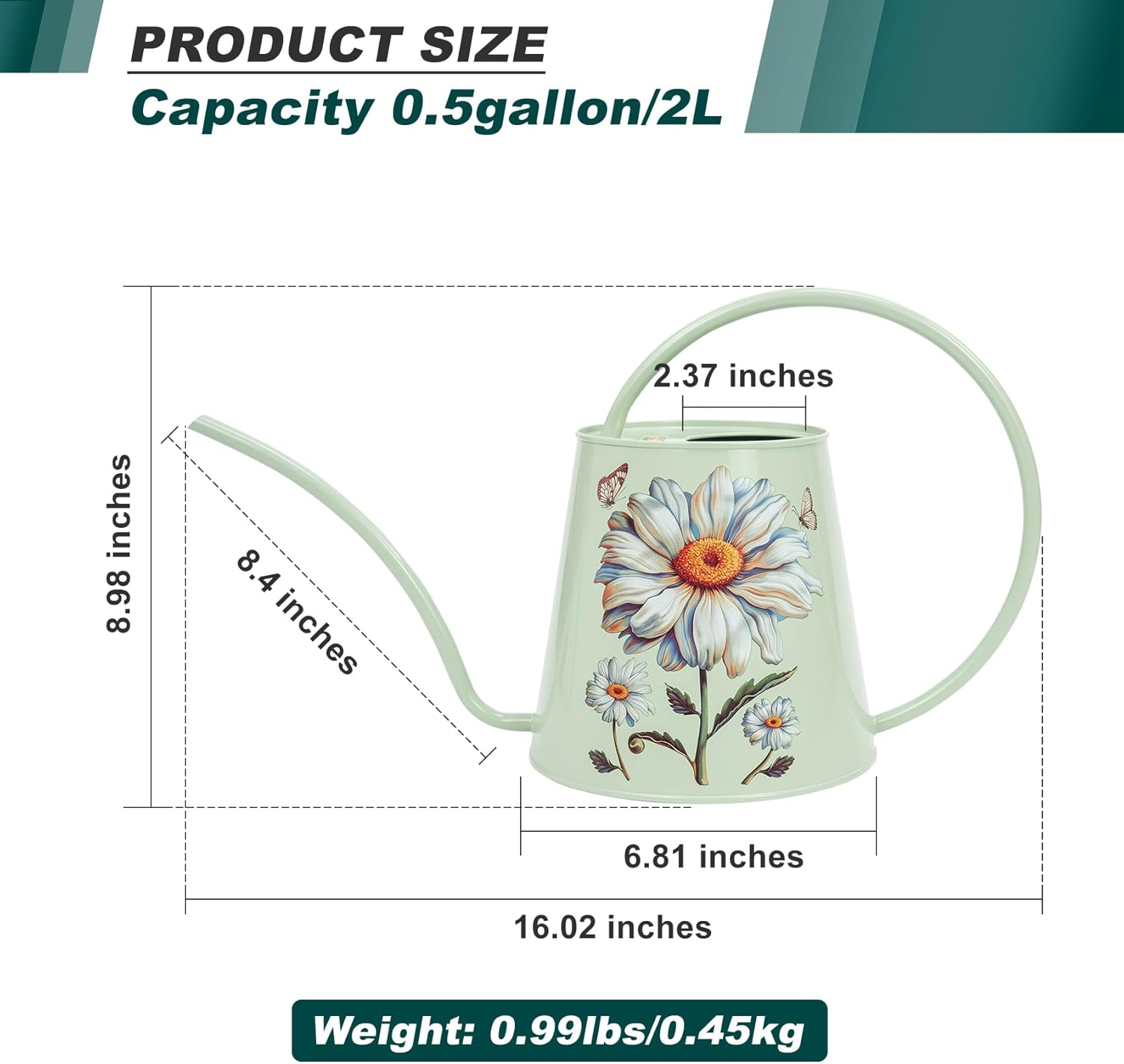 - [HIGH-QUALITY STAINLESS STEEL: This watering can is made of stainless steel. After many polishing surfaces, the smooth texture can resist daily scratches, corrosion and is not easy to rust. The curved handle with no sharp edges makes it easy and comfortable to carry around one-handed even full. The welds around the bottom of the spout and around the two points where the handle connects to the body are attached well to prevent it from leaking.