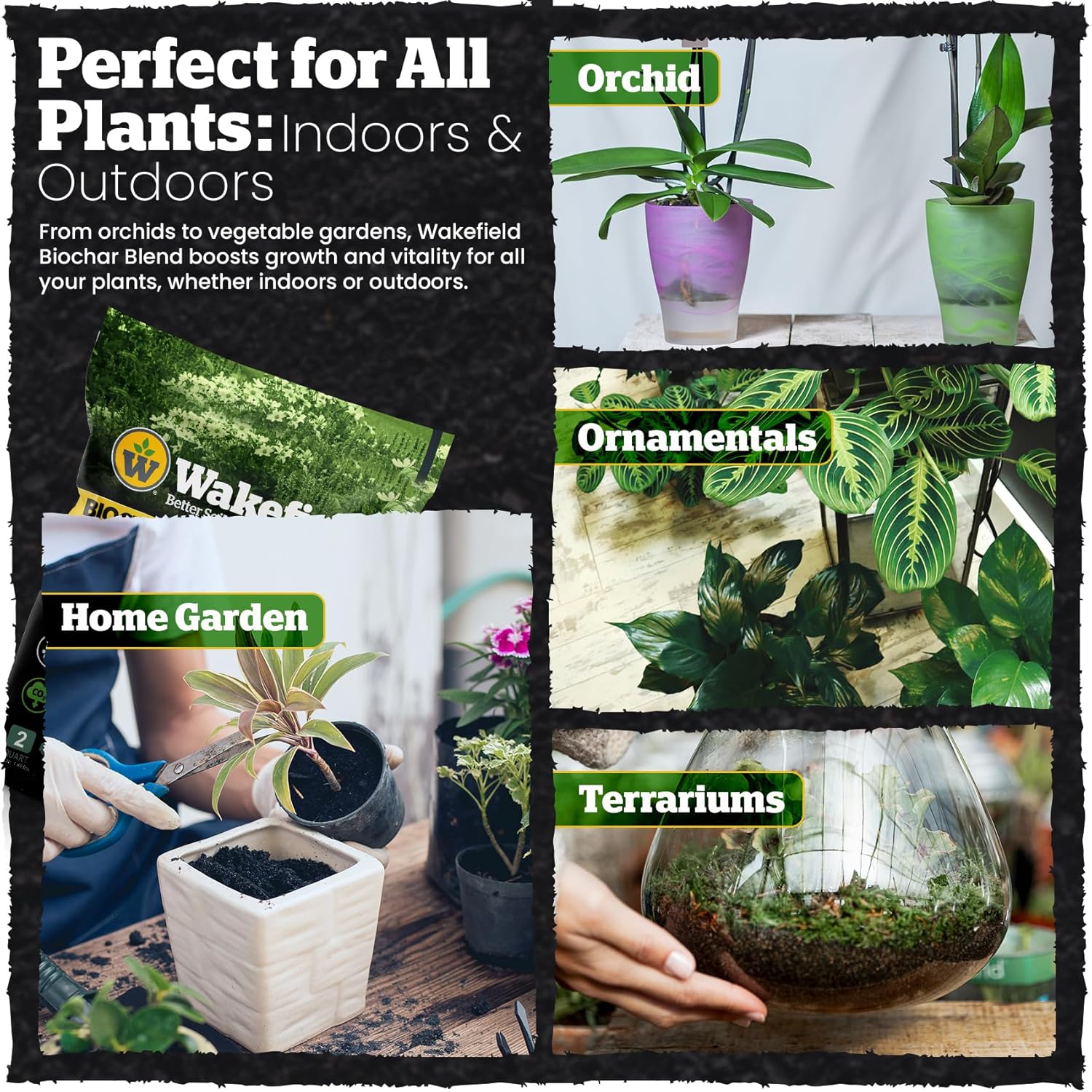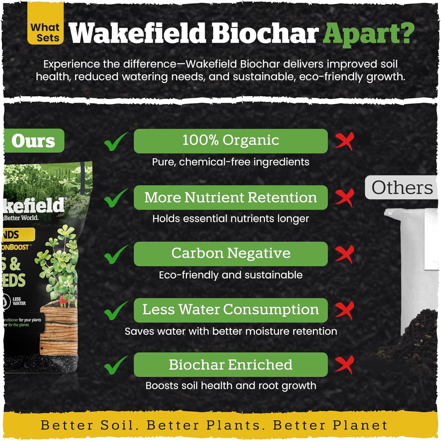 Wakefield Biochar Blend with CarbonBoost™ Technology – Enhanced Water & Nutrient Retention for Raised Bed Garden Soil - Ultimate Organic Potting Soil Mix for Vegetables, Gardens and Houseplants - 2qt