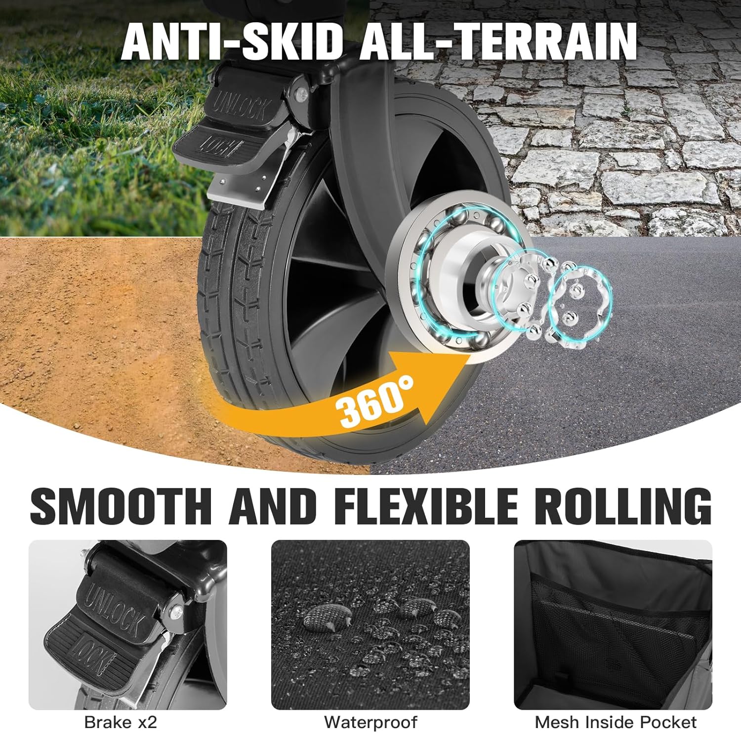 - 【Smooth & Versatile Wheels】-Muarch wagon cart is equipped with sturdy swivel wheels. These wheels are wear-resistant and anti-slip, featuring strong load-bearing capacity and excellent shock absorption, making them suitable for a variety of terrains. Additionally, the wheels are equipped with a braking system and quick-release design, highly convenient.