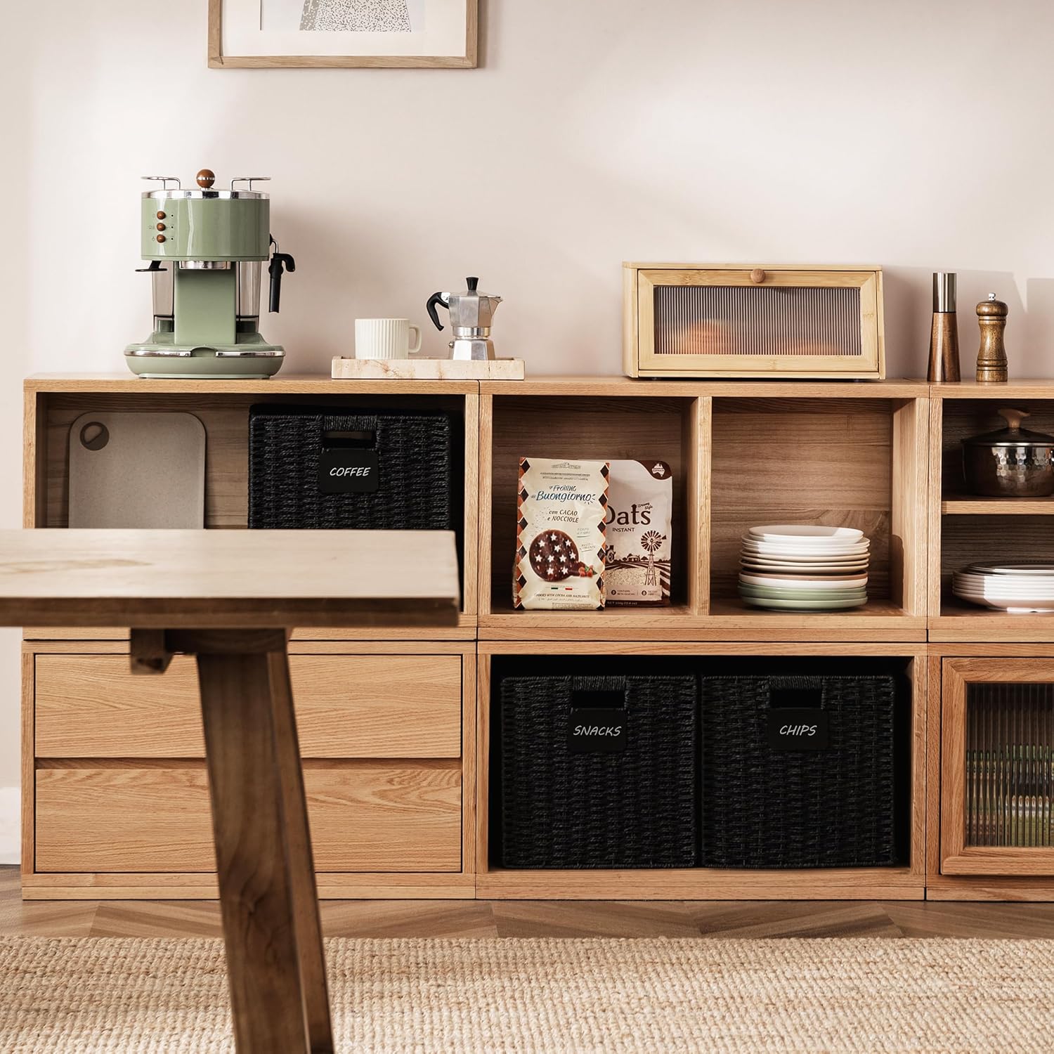 UBBCARE 2 Pack Wicker Basket, 10.5×10.5 Storage Cubes with Label, Foldable Cube Storage Bin with Handle, Square Storage Basket for Shelves, Woven Paper Rope Basket for Organizing, Black