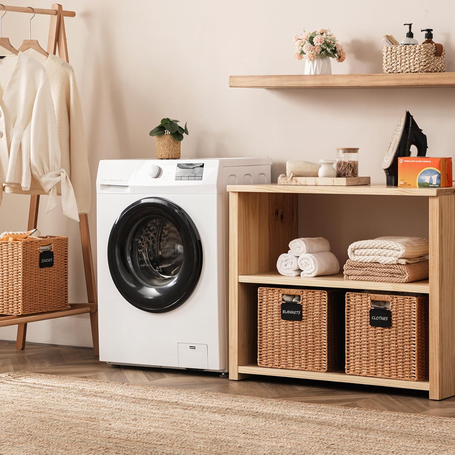 UBBCARE 4 Pack Wicker Basket, 10.5×10.5 Storage Cubes with Label, Foldable Cube Storage Bin with Handle, Square Storage Basket for Shelves, Woven Paper Rope Basket for Organizing, Caramel