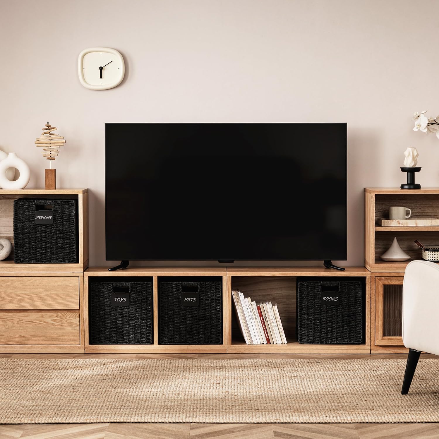 UBBCARE 2 Pack Wicker Basket, 13×13 Storage Cubes with Label, Foldable Cube Storage Bin with Handle, Square Storage Basket for Shelves, Woven Paper Rope Basket for Organizing, Black