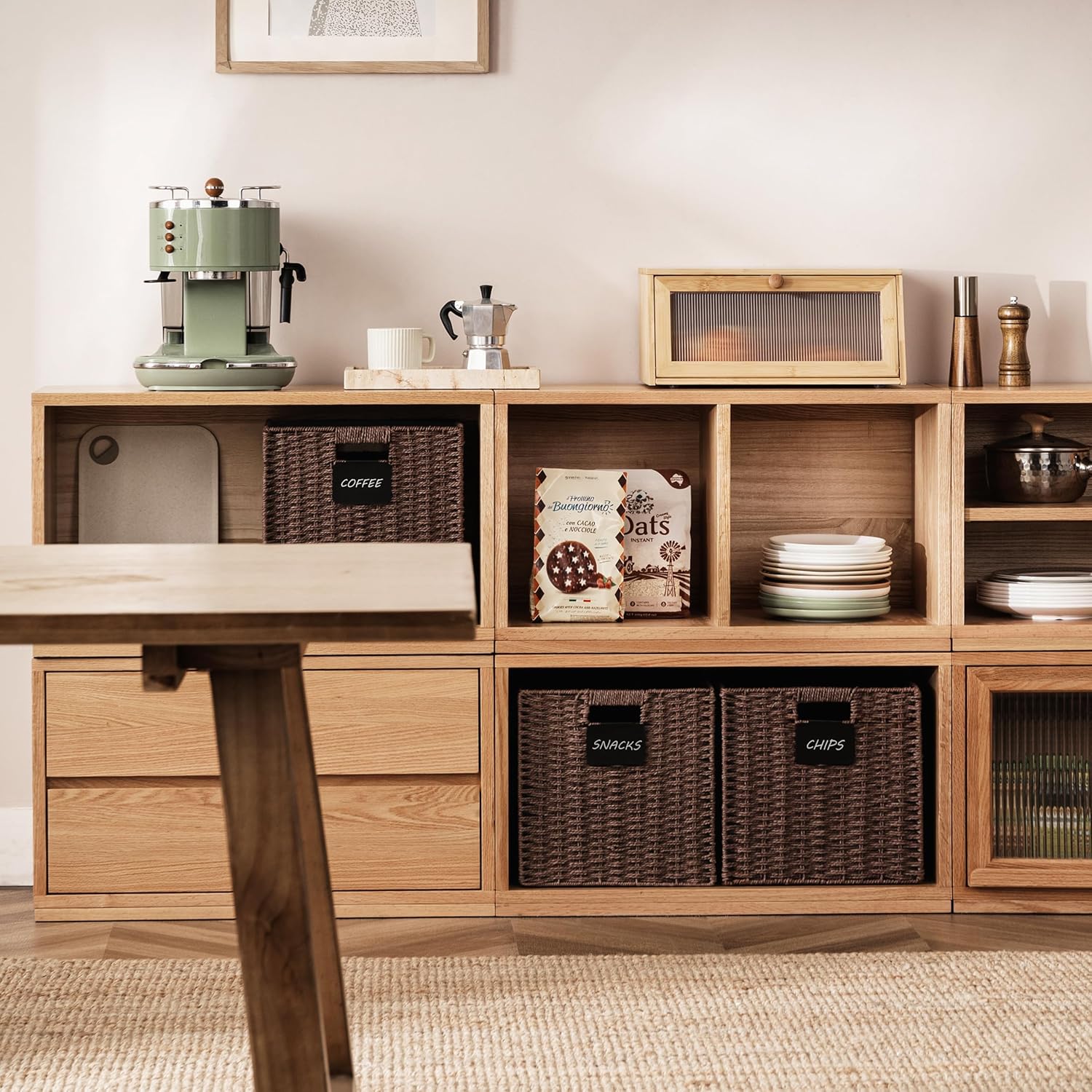 UBBCARE 2 Pack Wicker Basket, 13×13 Storage Cubes with Label, Foldable Cube Storage Bin with Handle, Square Storage Basket for Shelves, Woven Paper Rope Basket for Organizing, Brown