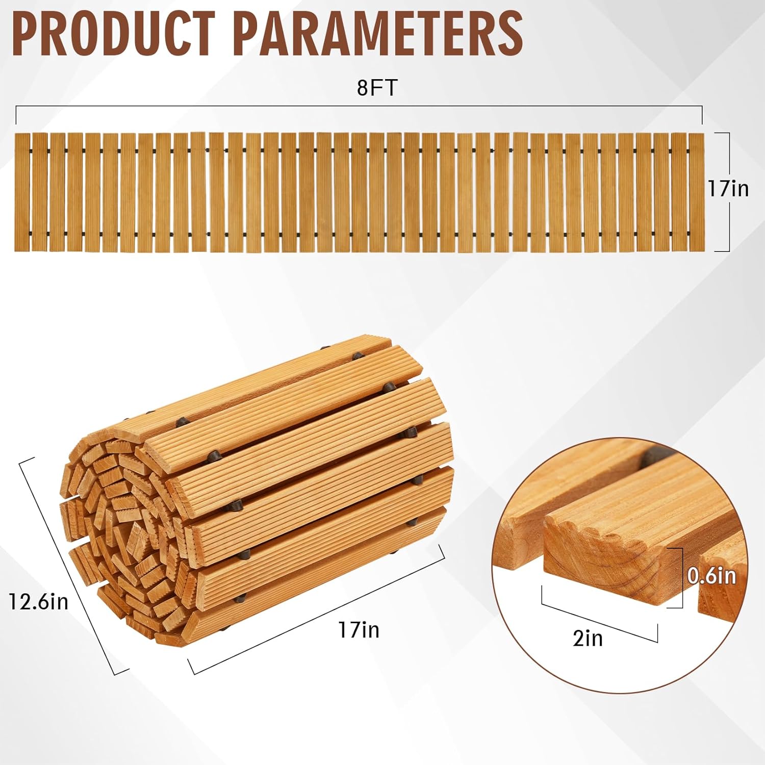 - Convenient Maintenance: Our wooden walkway path does not require assembly or accessories, and can be used simply by taking it out of the box, greatly enhancing the customer's experience. It can be easily cleaned through high-pressure water pipes.The rollable design of the wooden floor also makes it easy to store. When you're not using it, you can roll it up and store it, occupying only a small corner