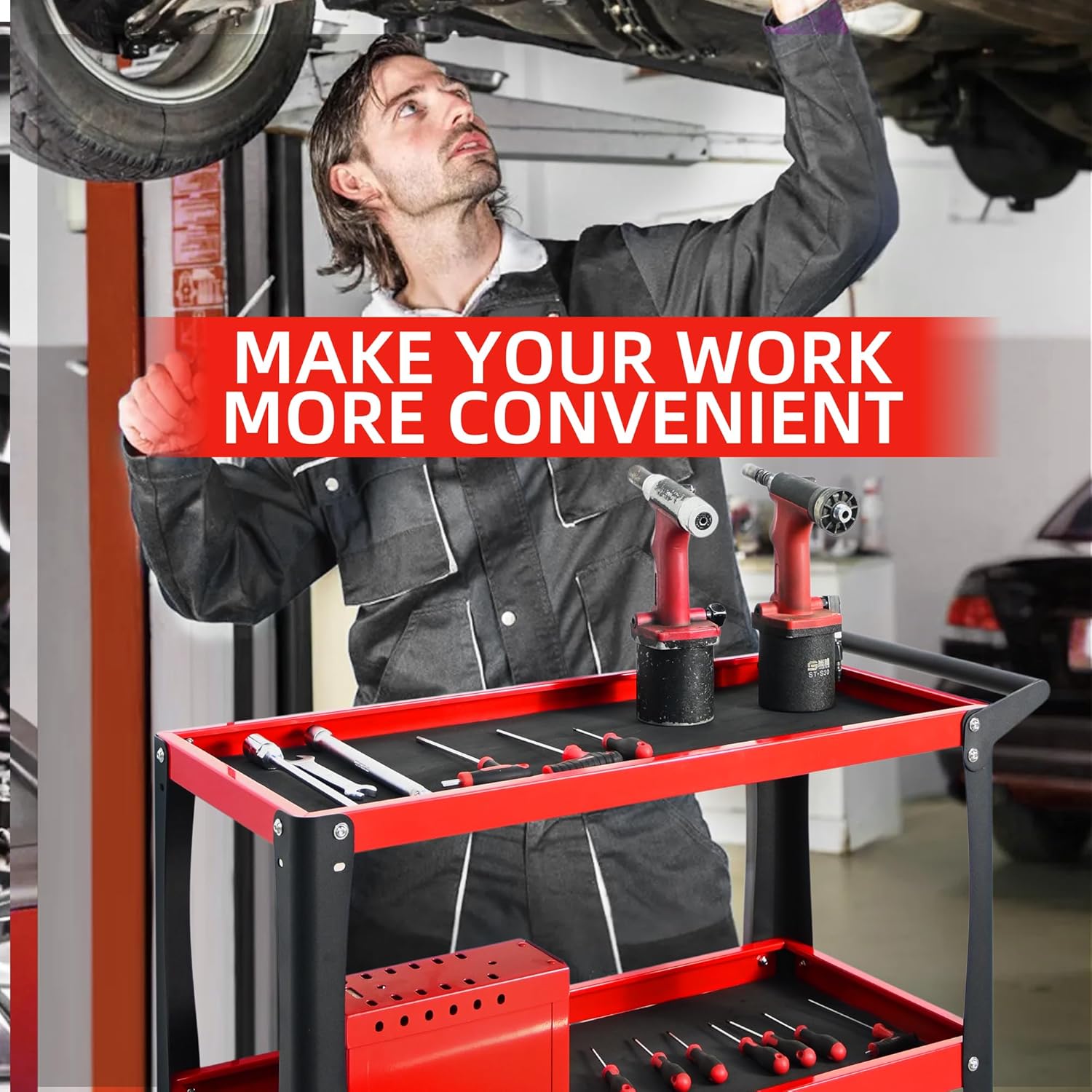 - Versatile for Various Applications: Tool cart is not only perfect for workshops and garages but also highly suitable for warehouses and various repair environments. Whether it's tools, parts, or other items, our rolling tool cart helps you keep everything organized with ease