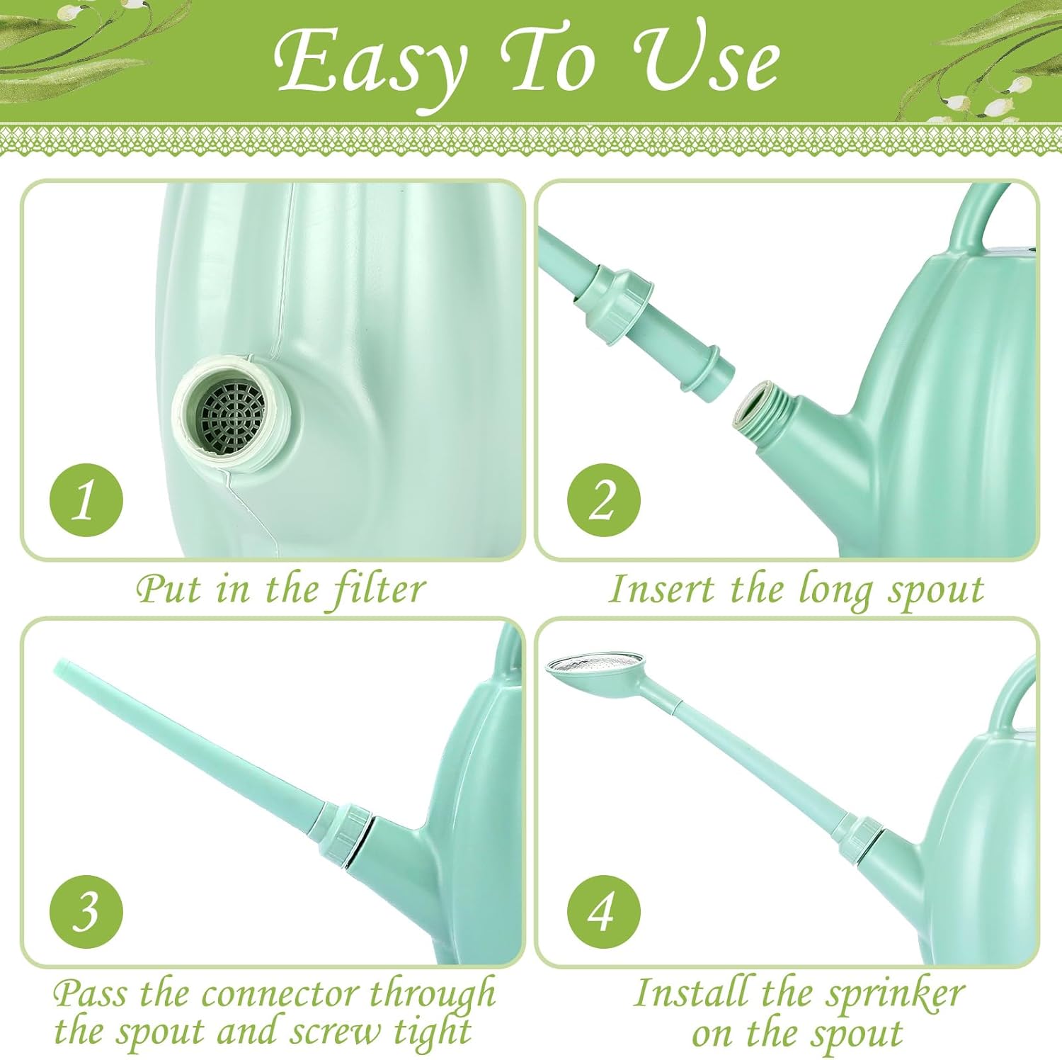 - UPGRADED DETACHABLE CONVERTIBLE NOZZLE: With the help of the watering can's detachable shower nozzle, you can water your hanging or wall-mounted plants with great ease. Indoor and outdoor plants benefit from its multipurpose design's ability to manage water flow more delicately and precisely.