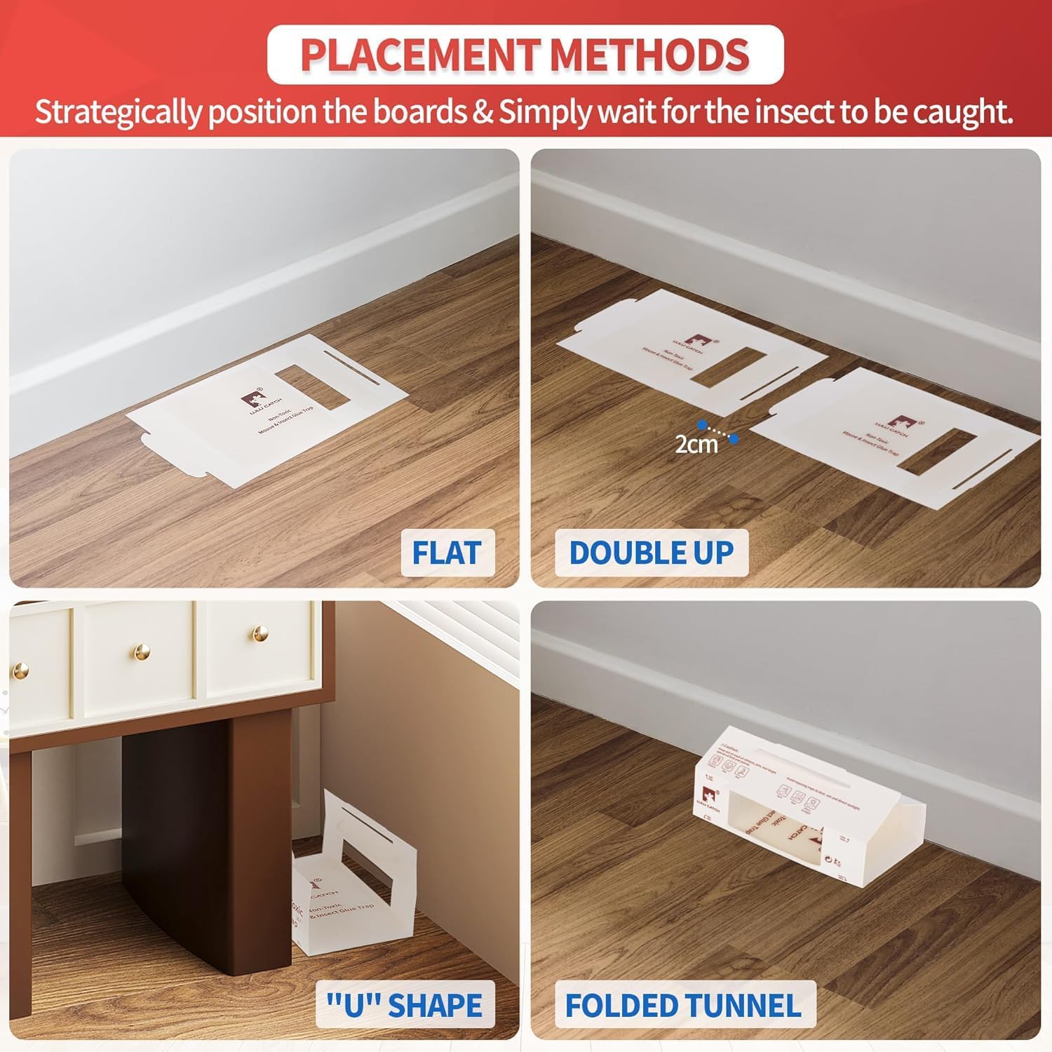 - EASY TO ASSEMBLE & READY TO US: This sticky trap comes with 24 glue boards. Four placement methods can be applied for the best capture: Flat, U-shape, Tunnel Box, and Double Up. No need to clean, re-set, or re-bait the glue traps. We suggest carefully pealing off the backing starting from the top tab area of the cardboard sheet. These glue traps are disposable, just wrap them and throw them straight into the garbage can.