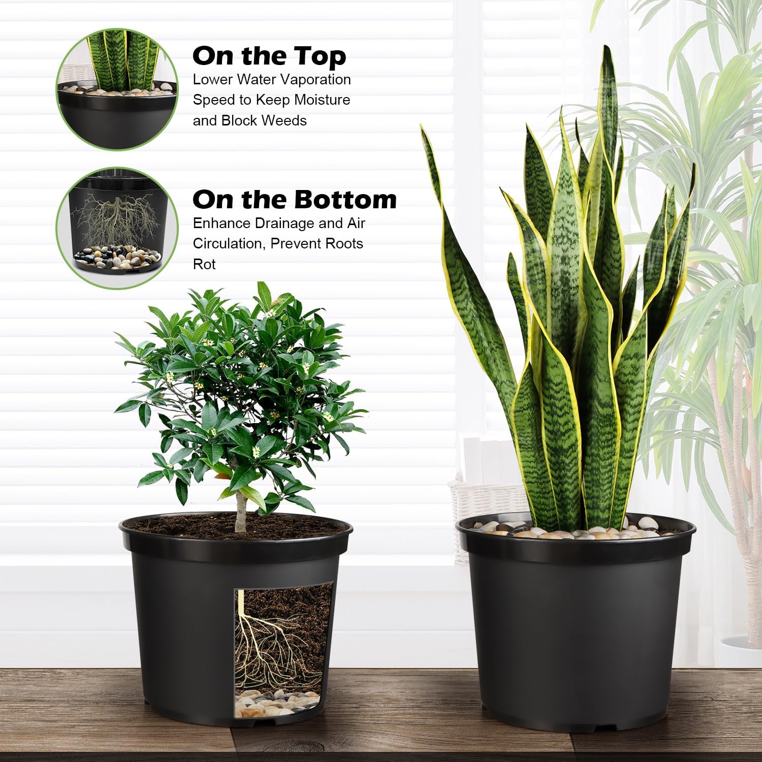 - Locks in Moisture & Fights Weeds: Top-layer pebbles slow evaporation for consistent hydration; acts as a natural barrier against unwanted weeds; keeps soil surface tidy