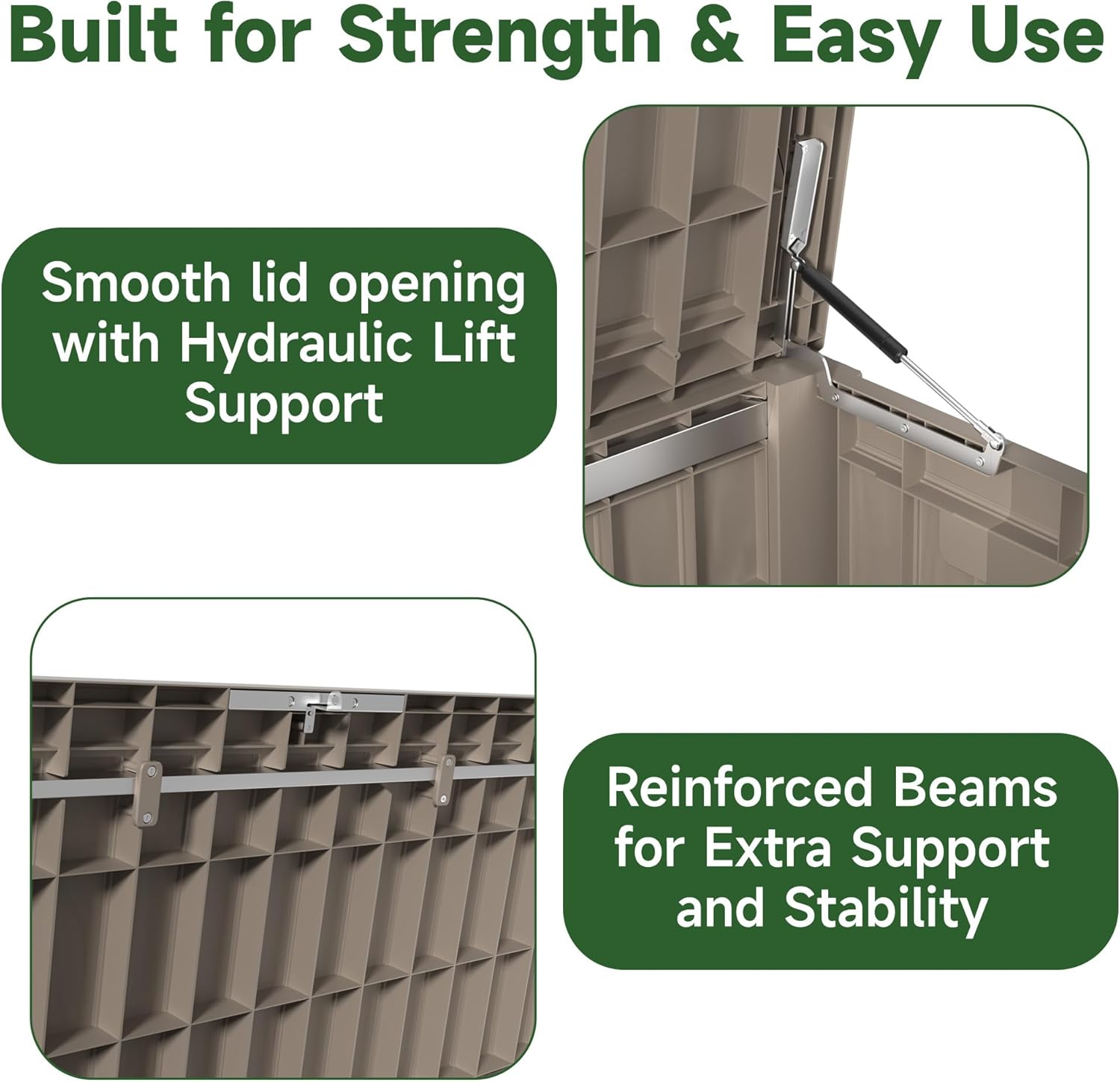 - STURDY AND RELIABLE BUILD:Designed with internal reinforcement, this deck box offers superior strength and stability compared to similar products. The robust panel construction and precise assembly help maintain its shape over time.