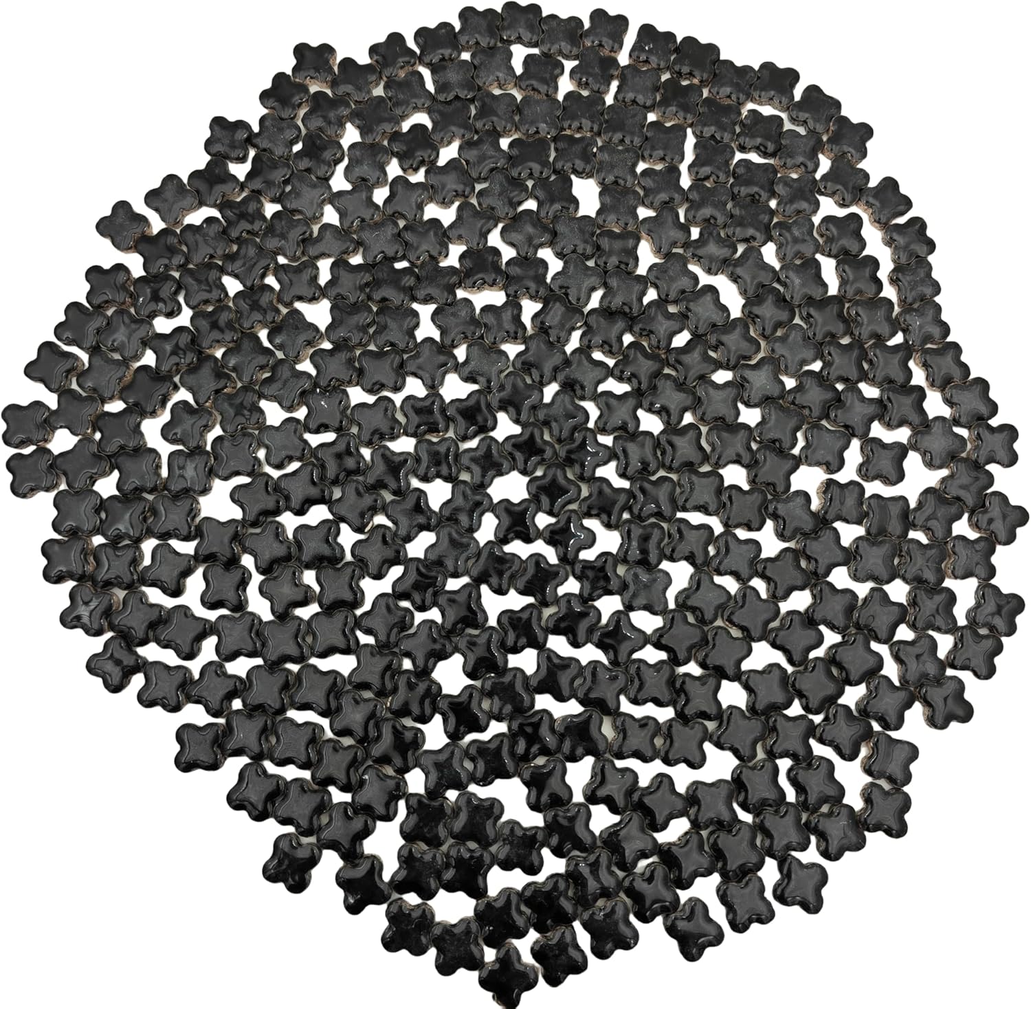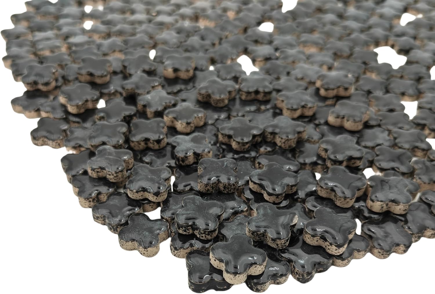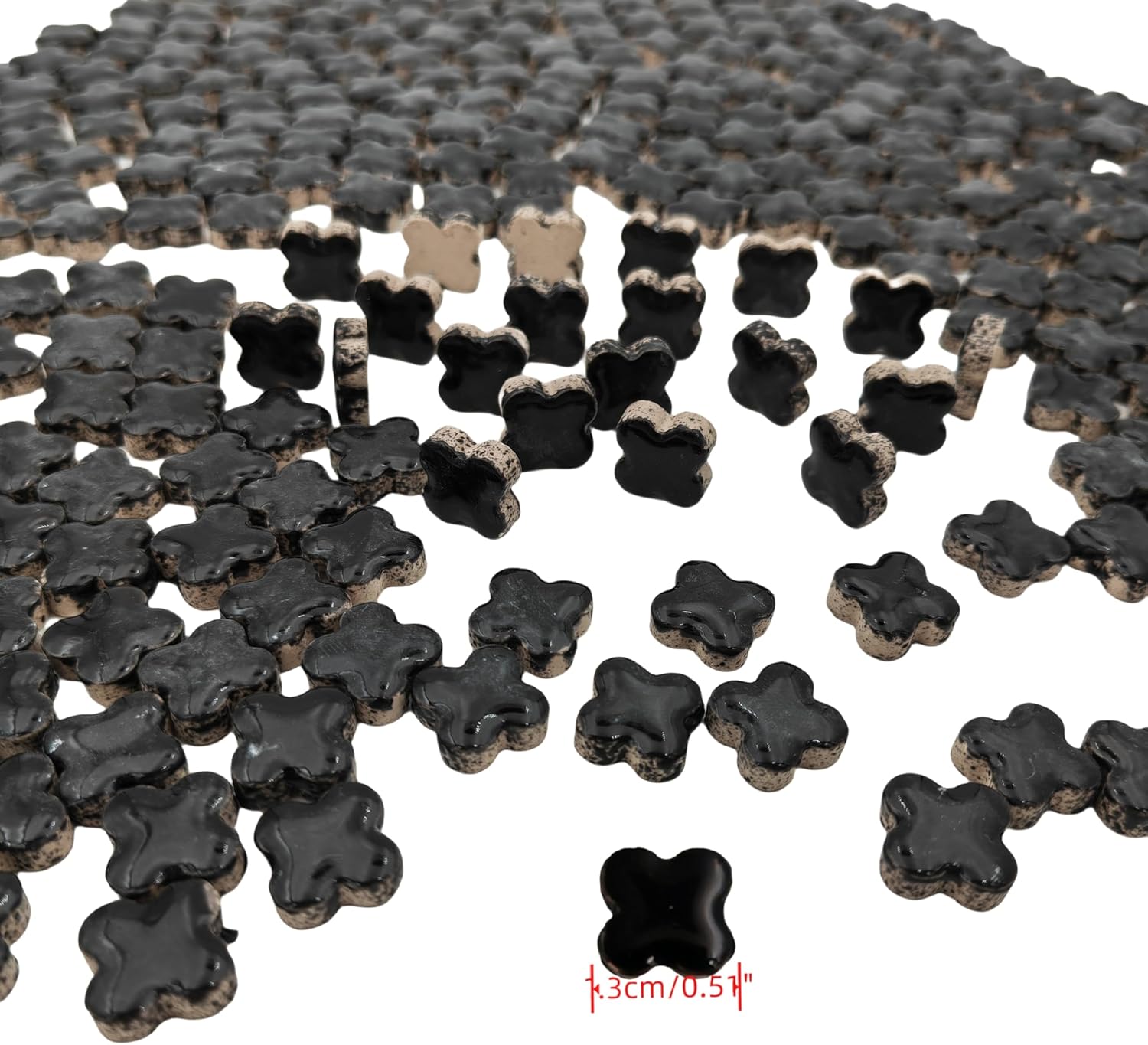 500g/1.1lb Random Color Irregular Ceramics Mosaic Tiles,DIY Making Creative Ceramic Mosaic Tiles for DIY Craft Plates Flowerpots Vases Cups Mosaic Making Supplies (Black Lucky Clover)