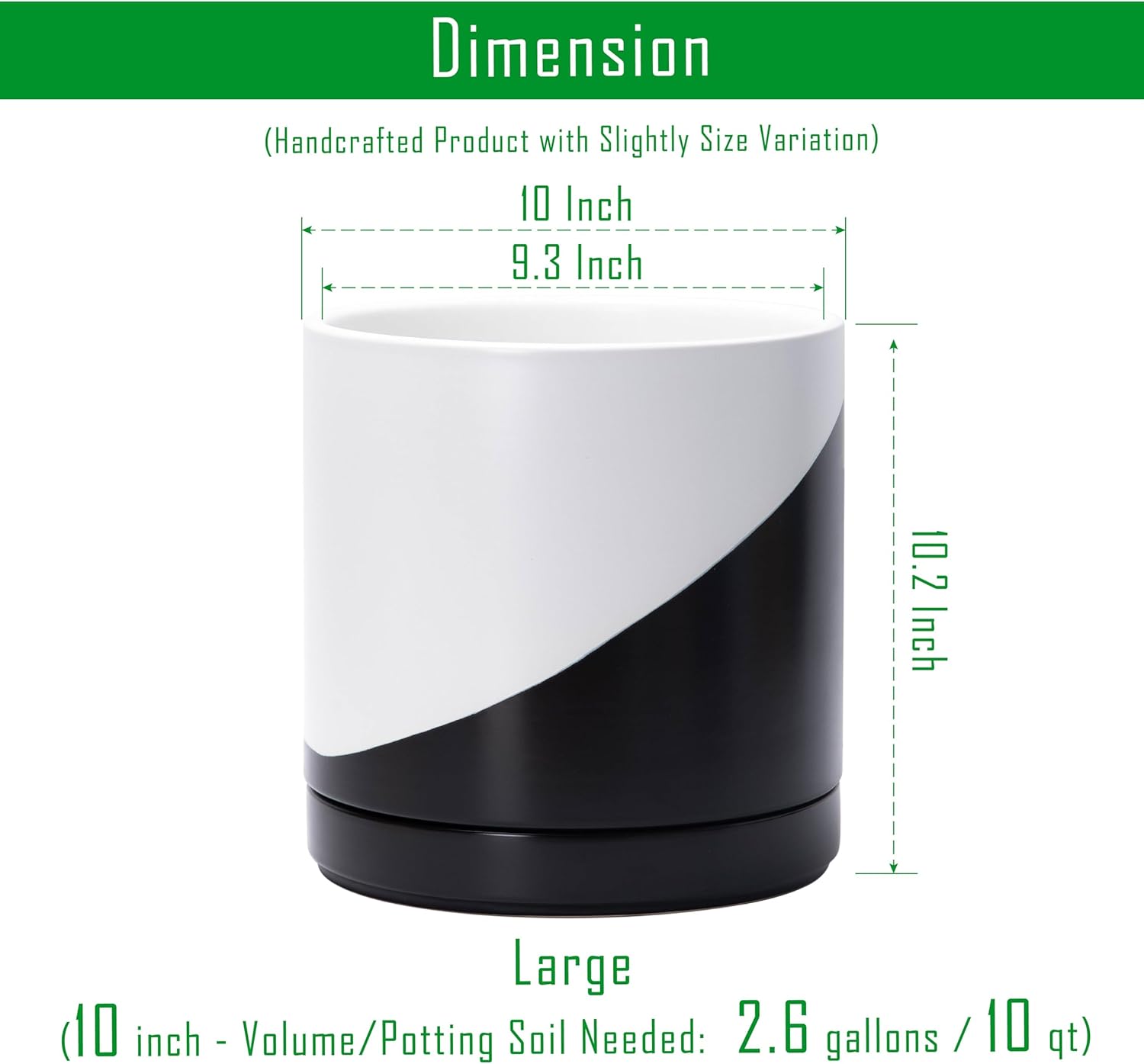 - Versatile Size Range: Offered in six sizes (3.5" to 11.8") to accommodate a variety of plants, from small succulents to large indoor greenery. Large 10 Inch Planter Pot: 10" Diameter x 10.2" H, Potting Soil Needed: 2.6 gallons / 10 qt.