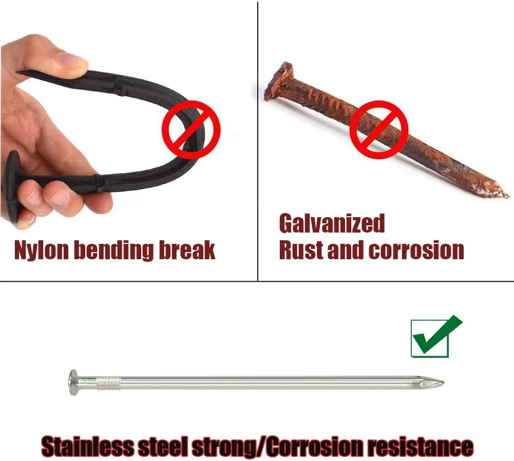 - 【EASY TO USE】Stainless steel nail end design sharp, can be easily and quickly inserted into the turf, the landscape or garden or thick soil and house building materials, thick metal nails all over the body of the hard not easy to bend, suitable for a variety of need to be fixed in a variety of scenarios.