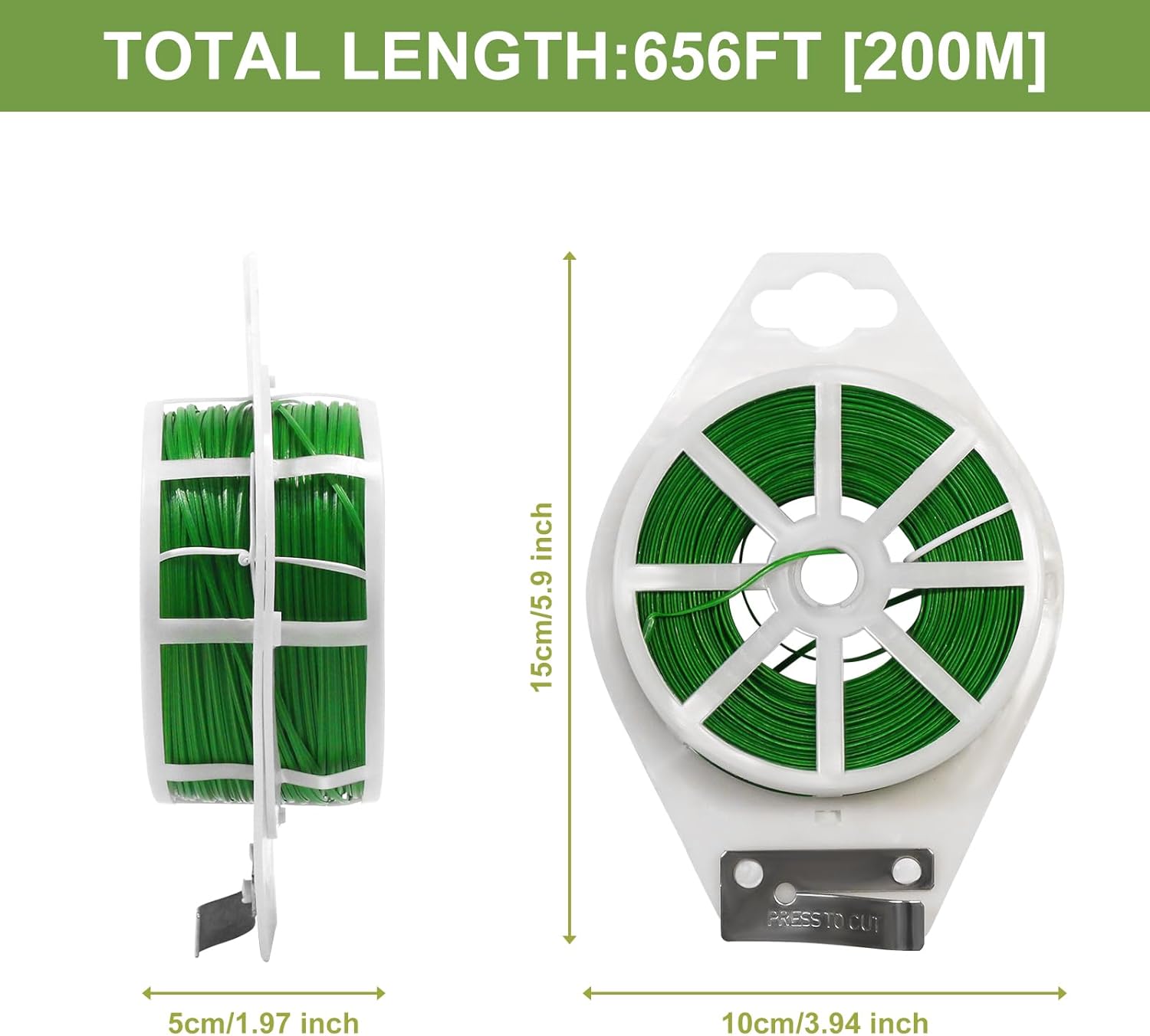 - 【Great Length and Superior Material】: 1312 feet (400 meters) per roll, durable enough for long-term use.The garden wire is made of high-quality green plastic-coated iron.