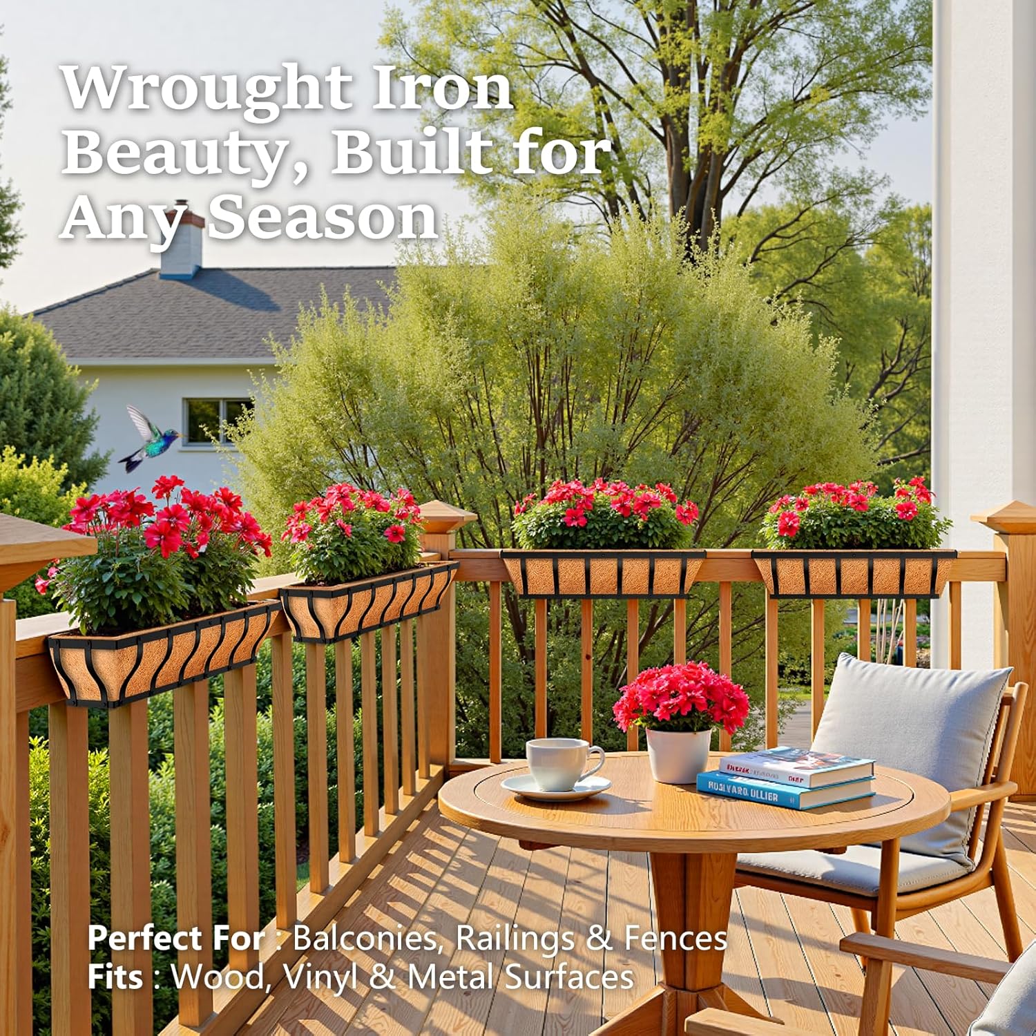 - Sturdy & Durable: Made from high-quality iron and coated with a rust-resistant powder coating, this railing planter box effectively resists corrosion and rust, easily withstanding various weather conditions. It ensures reliable support for your plants throughout the seasons.