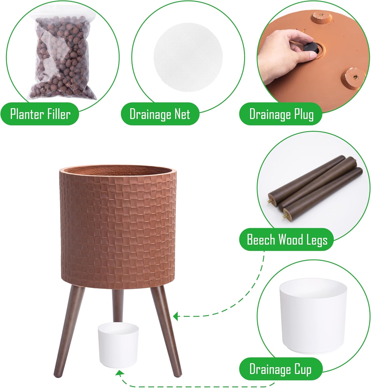 - Sturdy Wooden Legs: Supported by sleek wooden legs, this planter offers a stable base and enhances its overall aesthetic appeal.