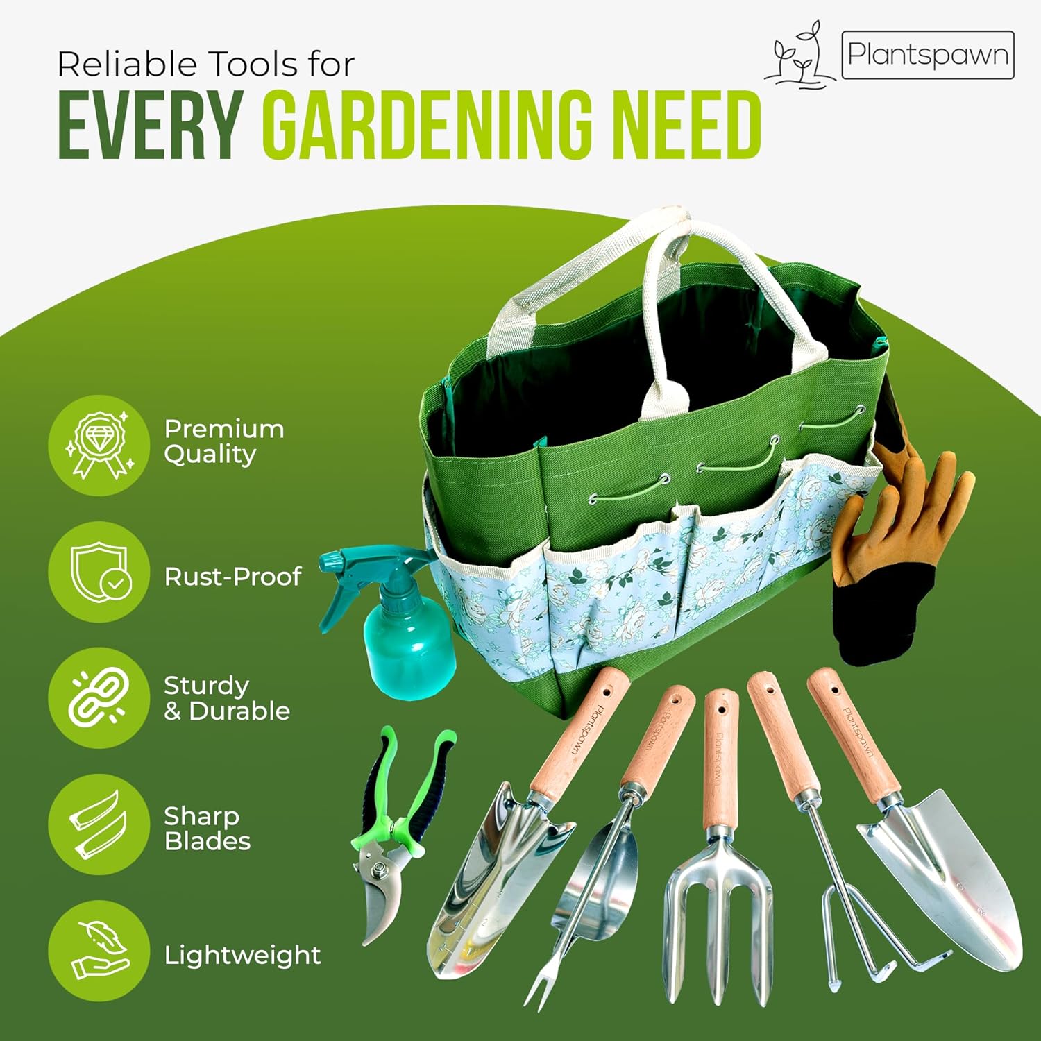 - Heavy-Duty, Rust-Proof Garden Tools Set: Made from high-Stainless steel, these tools are built to last. Perfect for digging, planting, and weeding, they feature non-slip ergonomic handles for comfort. Includes a durable tote bag to keep tools organized and ready for use.