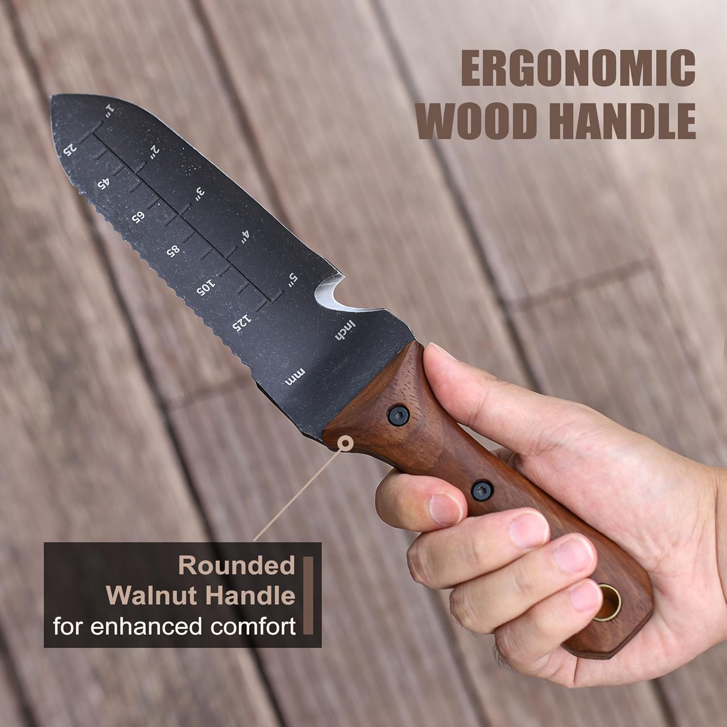 - Versatile gardening tool can be used as depth measuring ruler, rope cutter, branches cutter, roots digger. Suitable for measuring, gardening, harvesting and planting. With so many uses, the knife is a good partner for a range of outdoor activities, including gardening, fishing, and camping.