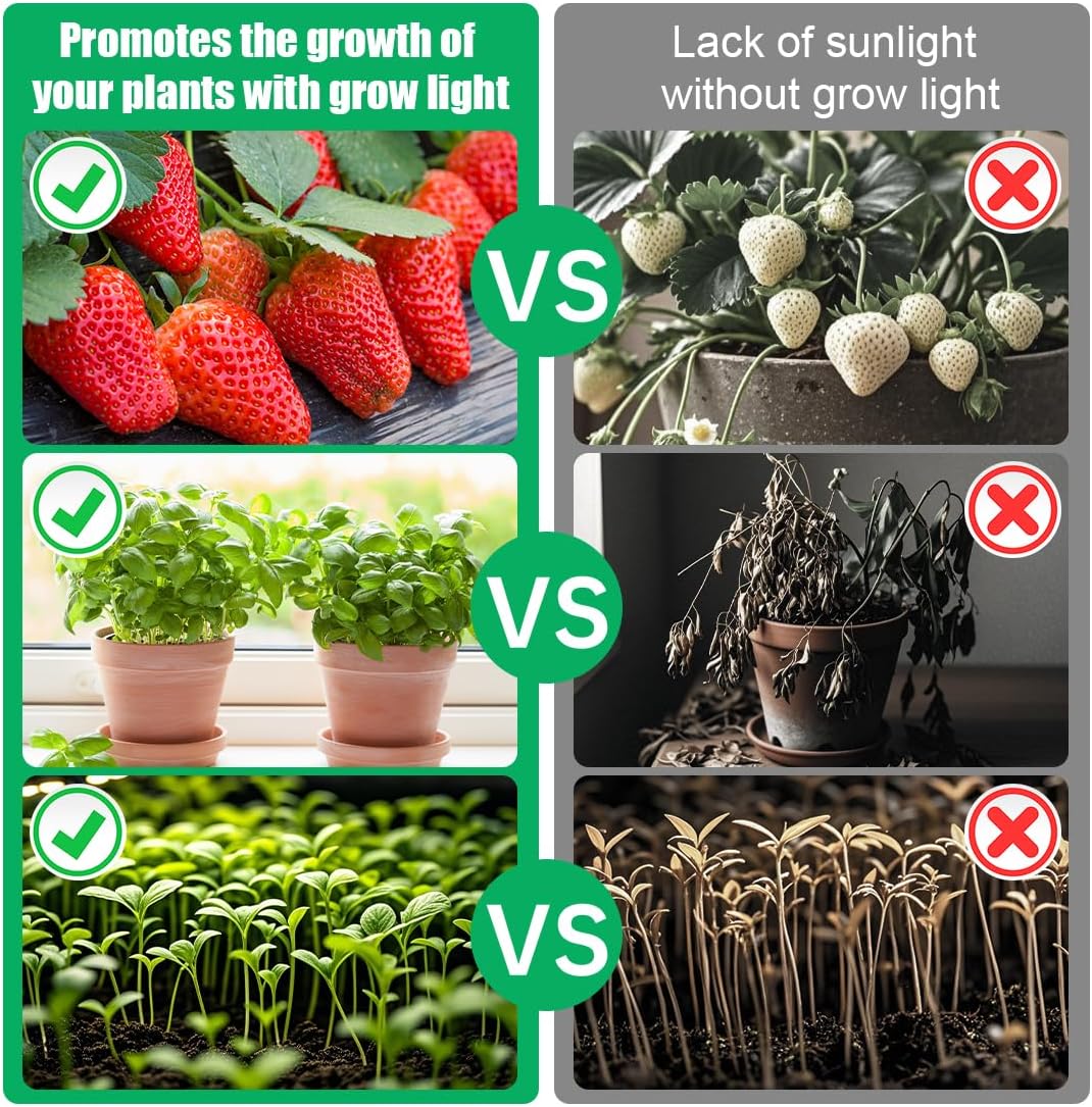 - Boost Seedling Growth with 4 Full-Spectrum LED Grow Lights – Energy-efficient lights with adjustable brightness mimic natural sunlight, accelerating germination and healthy growth for herbs, succulents, and seedlings