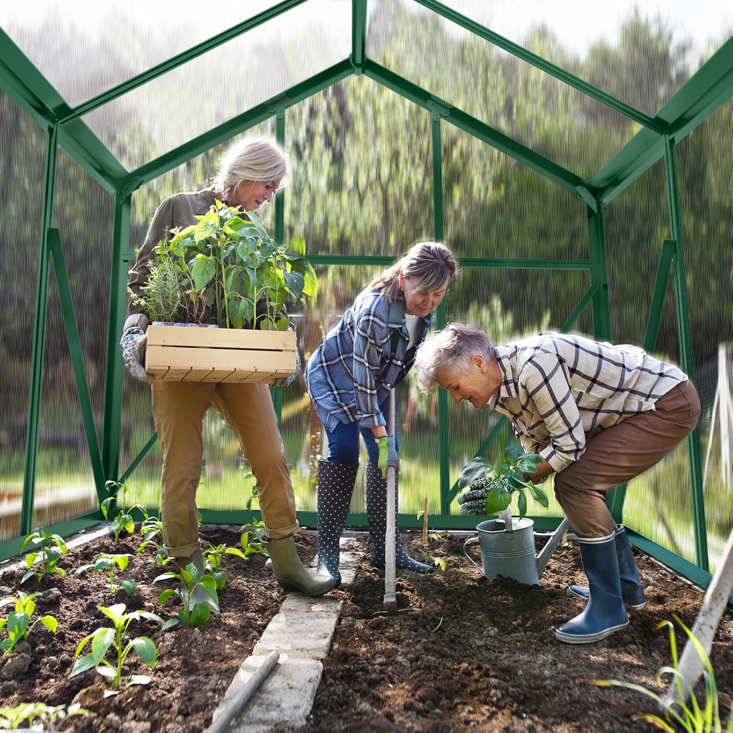 - Professional-Grade Construction - Built with a sturdy Green aluminum frame and crystal-clear polycarbonate panels, this green houses for outside offers excellent insulation and UV protection, creating an ideal environment for growing vegetables, flowers, and herbs.