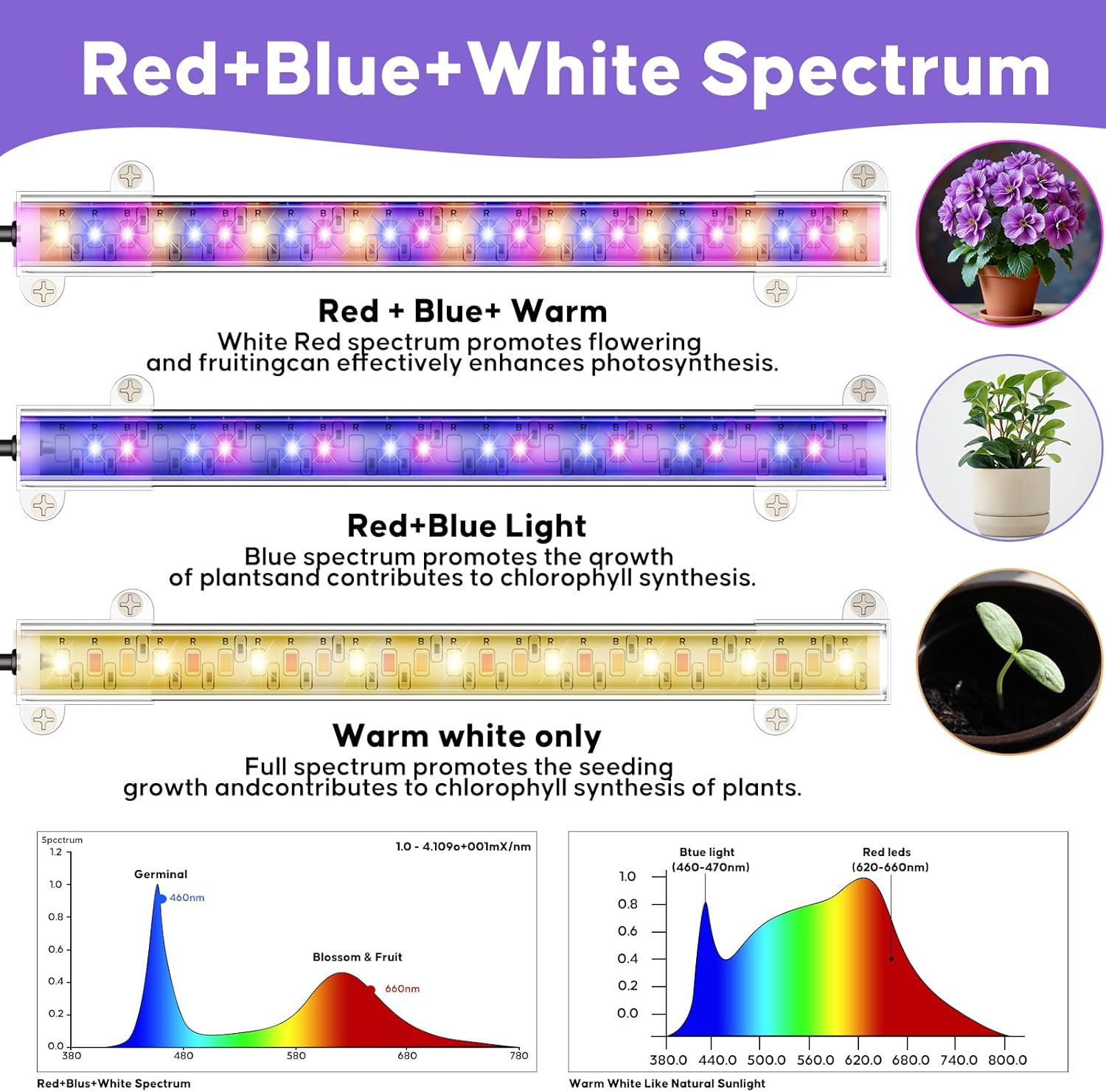 - 【Multi-function Plant Grow Lights】The plant stand indoor comes with 3 strips of plant grow lights, you can adjust the installation position of the lights as you like. The plant lights have 3 spectral modes, 3 bright modes, 10 brightness adjustments and a timer function to meet the light conditions that plants need most at different stages, and promote the healthy growth of indoor plants.