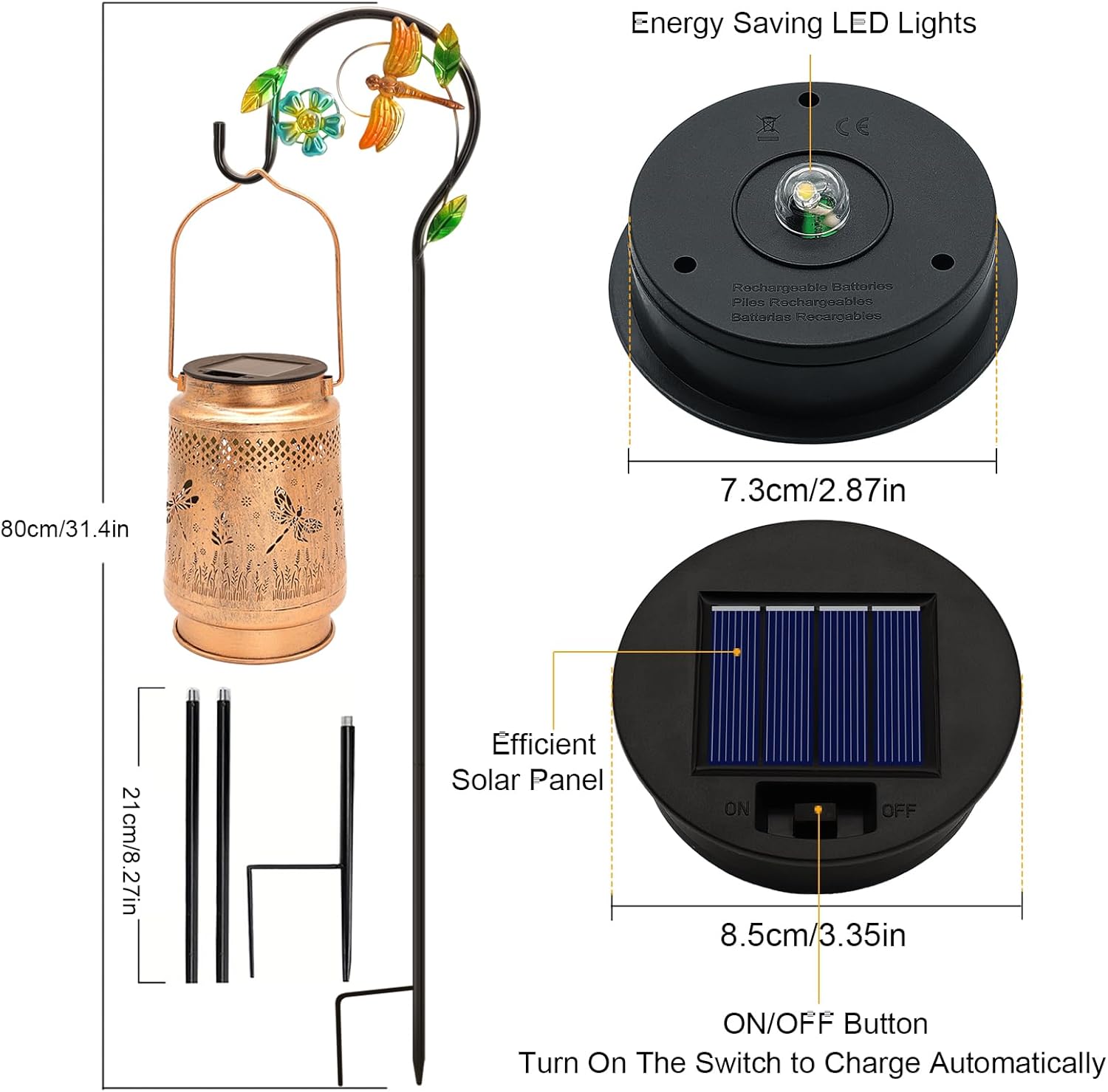 - Installation is Straightforward - The package includes sturdy shepherd hooks that can be easily inserted into the ground. You don't need any special tools or equipment, allowing you to set up your lanterns quickly and enjoy the benefits right away. It easy to hang and display, whether you prefer them towering above your garden or more subtly placed along pathways. Solar lights outdoor charge well during the day, lasting through the night. It's the perfect decoration for any outdoor space!