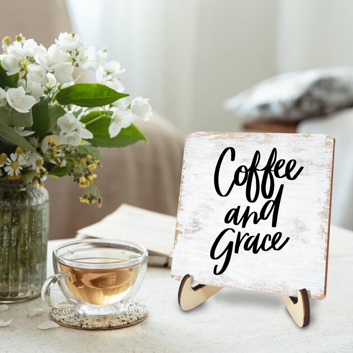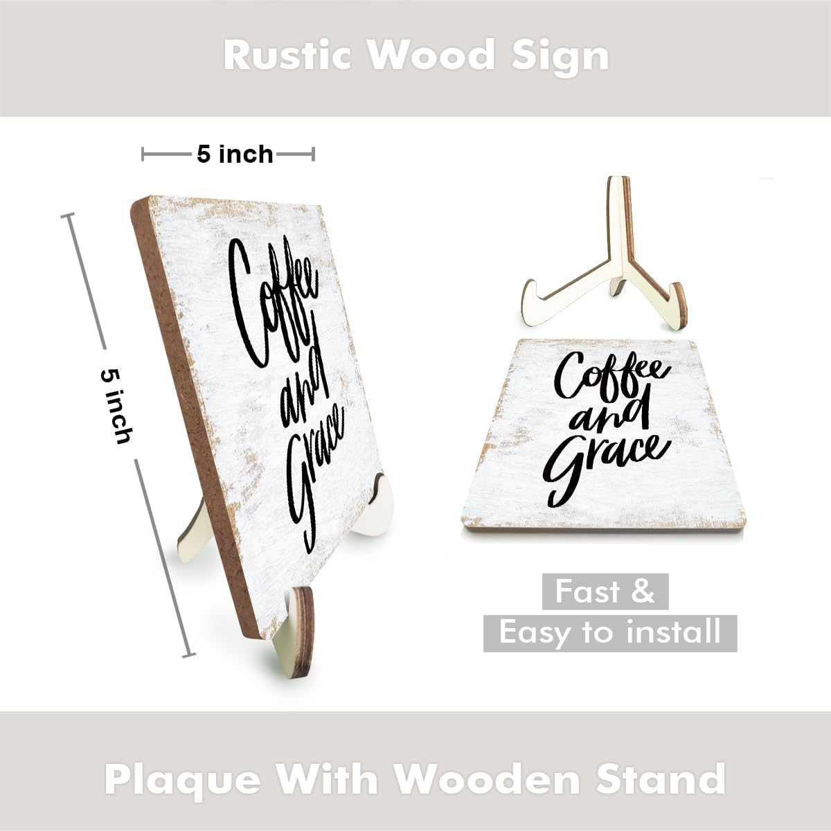 - PRODUCT INCLUDES: 1PCS Wood Sign (5.1x 5.1 inches) + 2PCS Wooden Stand (The wooden sign base is designed in two parts, cross-assembled to maximize the bottom contact area and achieve a perfect, will not block the content of text and pattern, and stable and non-dumping effect). Fast & Easy to install. It's sized to fit just right on your desk or you can put it in any position you want without taking up too much space.