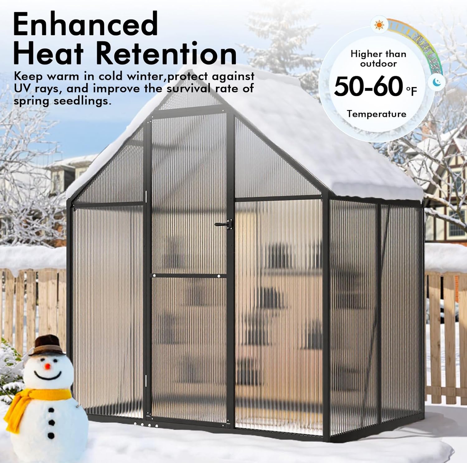 - QUALITY UV RESISTANT PANELS – The 580g PC panels of this mini greenhouse that are 4mm thick and twin-wall polycarbonate roof panels are designed for strength and clarity. These shatterproof panels let in just the right amount of light while controlling humidity and temperature in your greenhouse. They effectively block harmful UV rays, creating the great environment for your plants to thrive and preventing sunburn