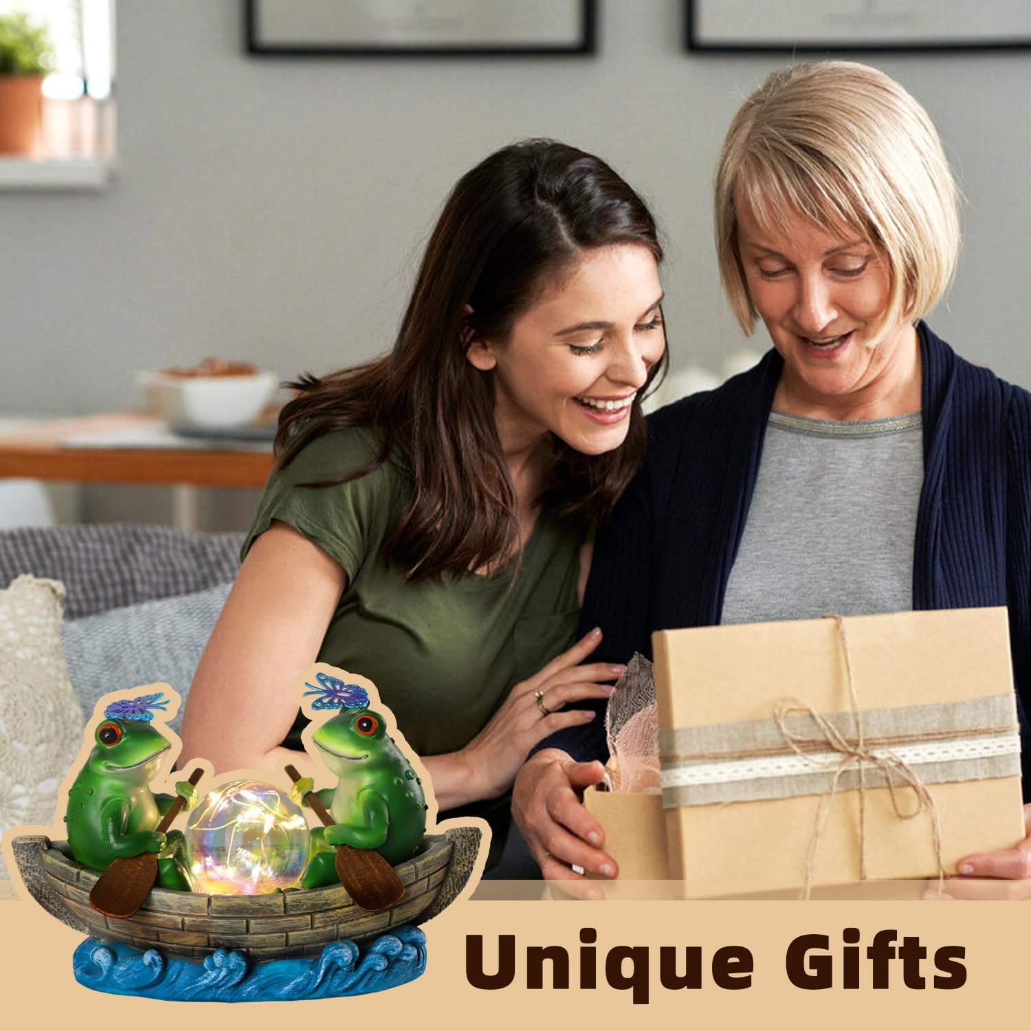Solar Frog Boating Garden Statue with Ball Light 5.1" Resin Frogs Decor for Home Front Door Patio Porch Balcony Women Gardeners Moms Wives Girlfriends