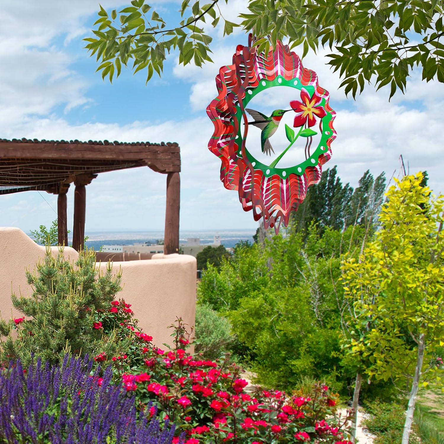- 【3D Hummingbird Wind Spinner】The bird wind spinner showcases a breathtaking 3D hummingbird design. As it catches the sunlight, it imparts vivid colors and lively movement, creating a captivating display that offers both a delightful visual experience and a sense of wonder. This humming bird wind spinner is sure to enhance the charm of your garden or patio.