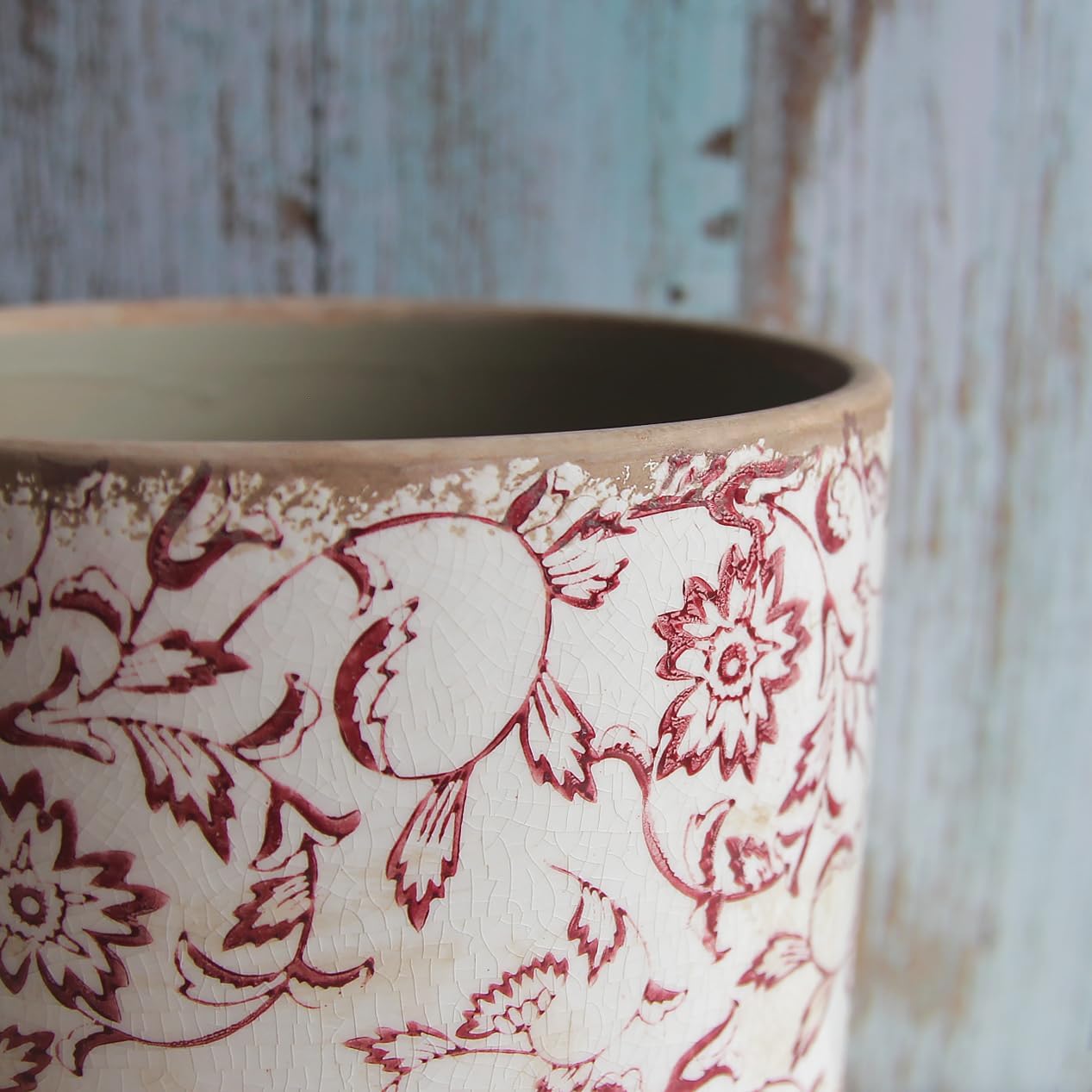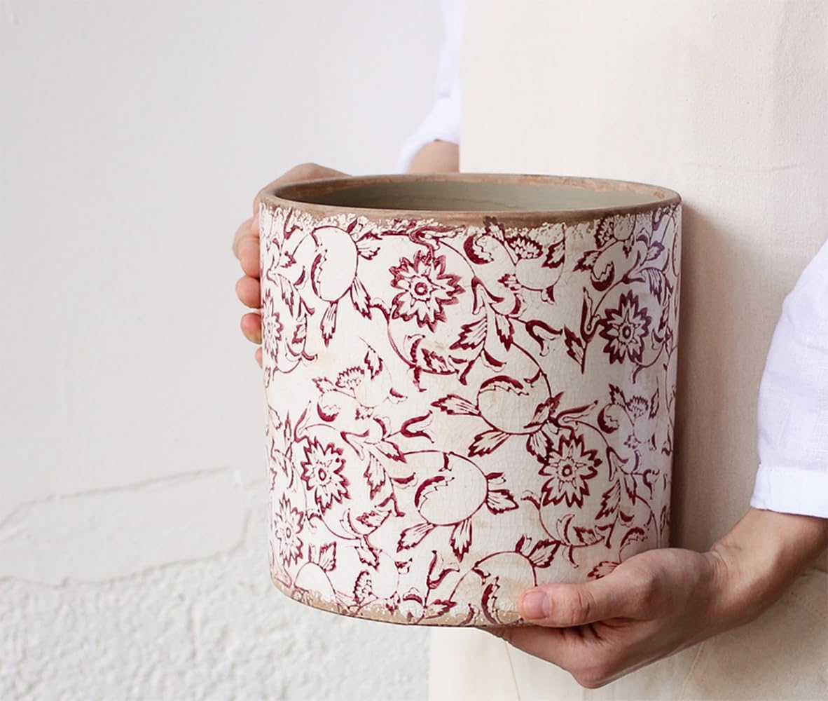 7.48in. Planters for Indoor Outdoor Plants, Rustic Pots for Plants, Vintage Plant Pots Indoor, Tuscan Indoor Tree Pot, Crackle Glazed Planter, Red Flower Pot Outdoor for Garden, Large