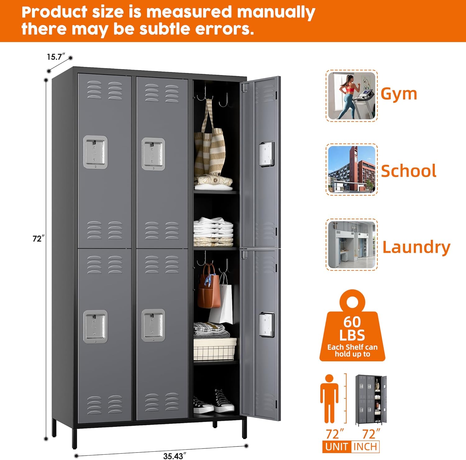 - 【Complimentary Hooks】We provide an additional 18 hooks for this 6 doors metal locker. There are reserved holes on the cabinet to install hooks for hanging small items such as scarves, hats, keys, bags, etc.