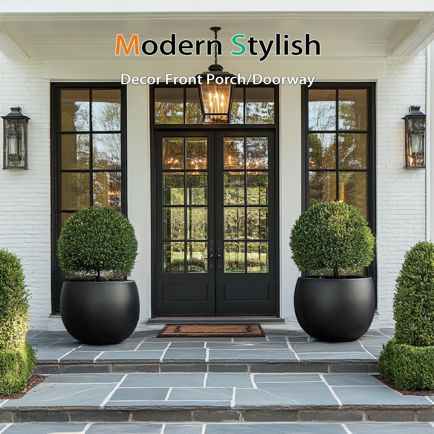 Ball Concrete Planter Outdoor Indoor, Large Tall Cement Plant Pots for Trees Flowers (Black, 16 inch)