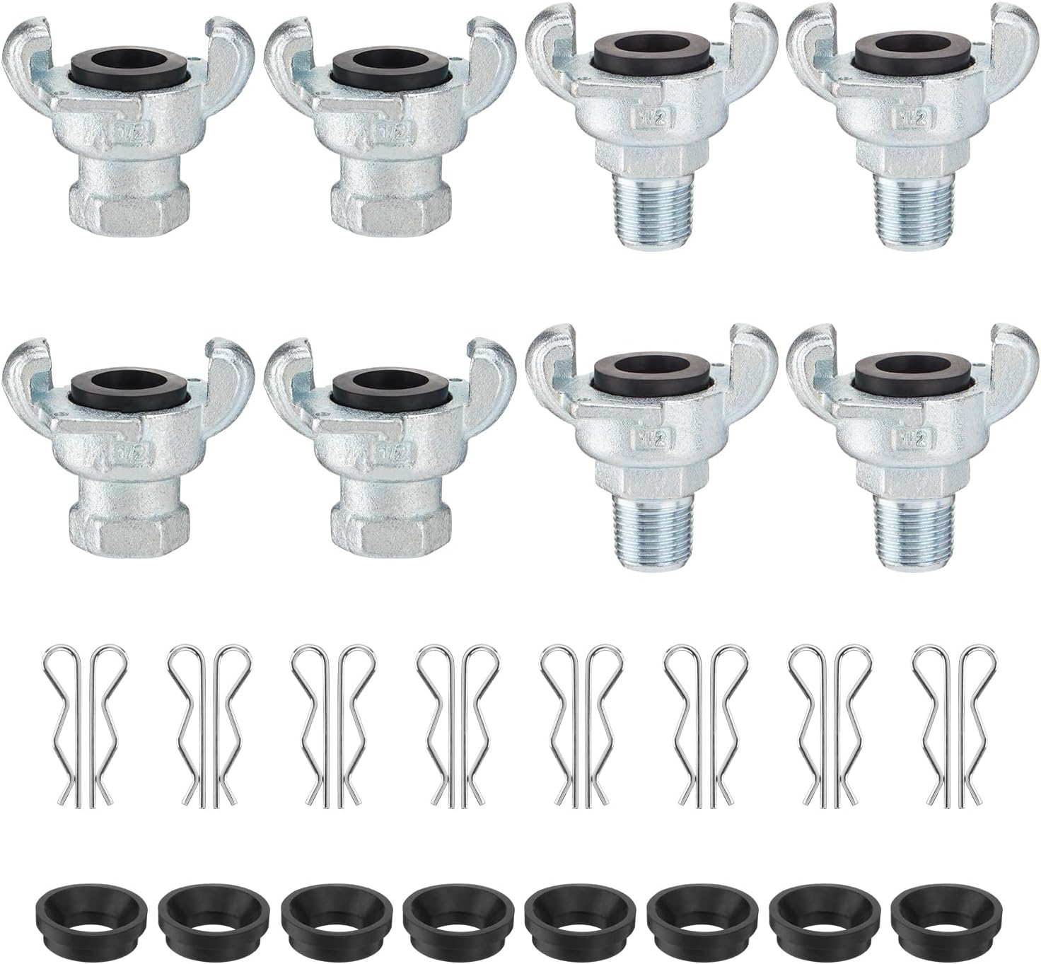 - What you will Get: Package includes 8PCS 1/2'' NPT hose end chicago fittings(4PCS male end; 4PCS female end); 16 PCS silver safety locks; 8PCS rubber washers. Any questions, please contact us anytime.