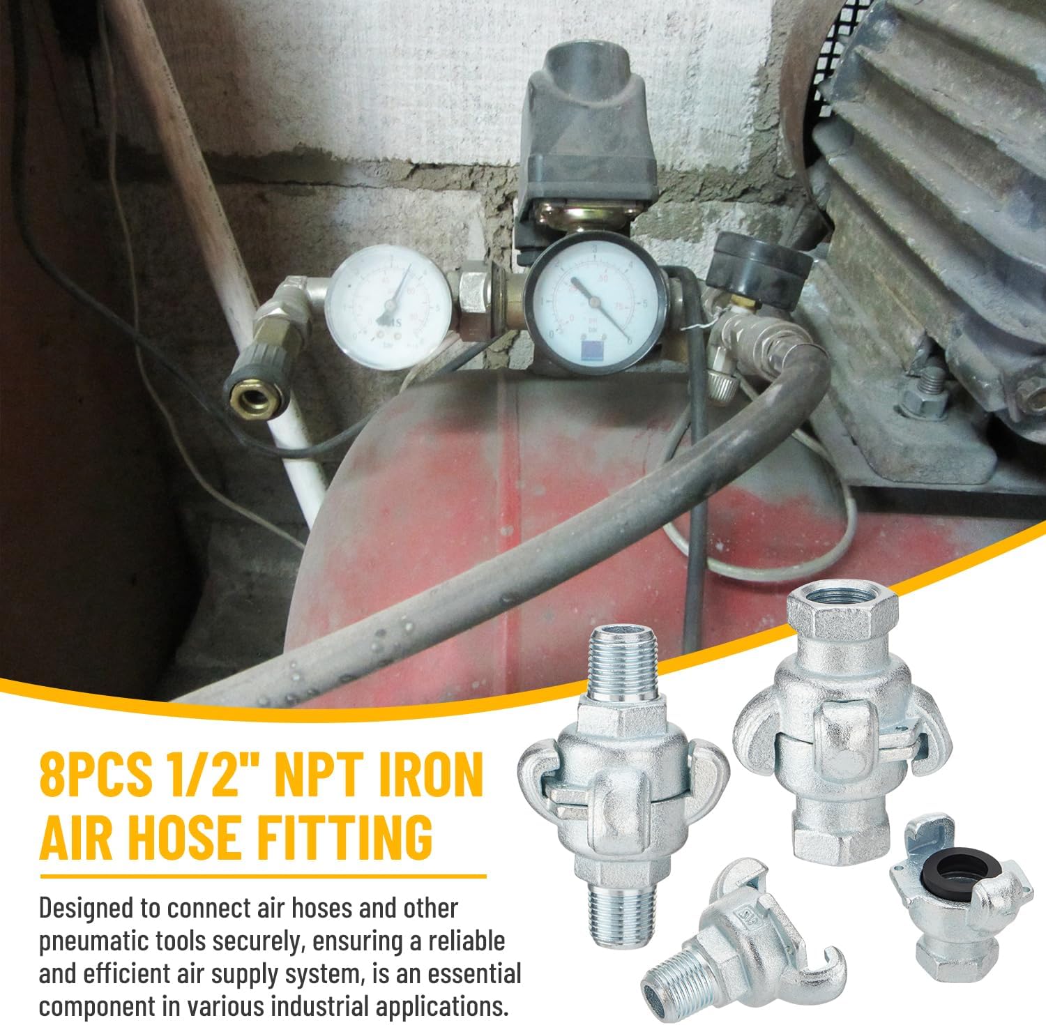 8PCS 1/2'' NPT Iron Air Hose Fitting, Universal Coupling Chicago Fitting 1/2'' for Male End, Female End