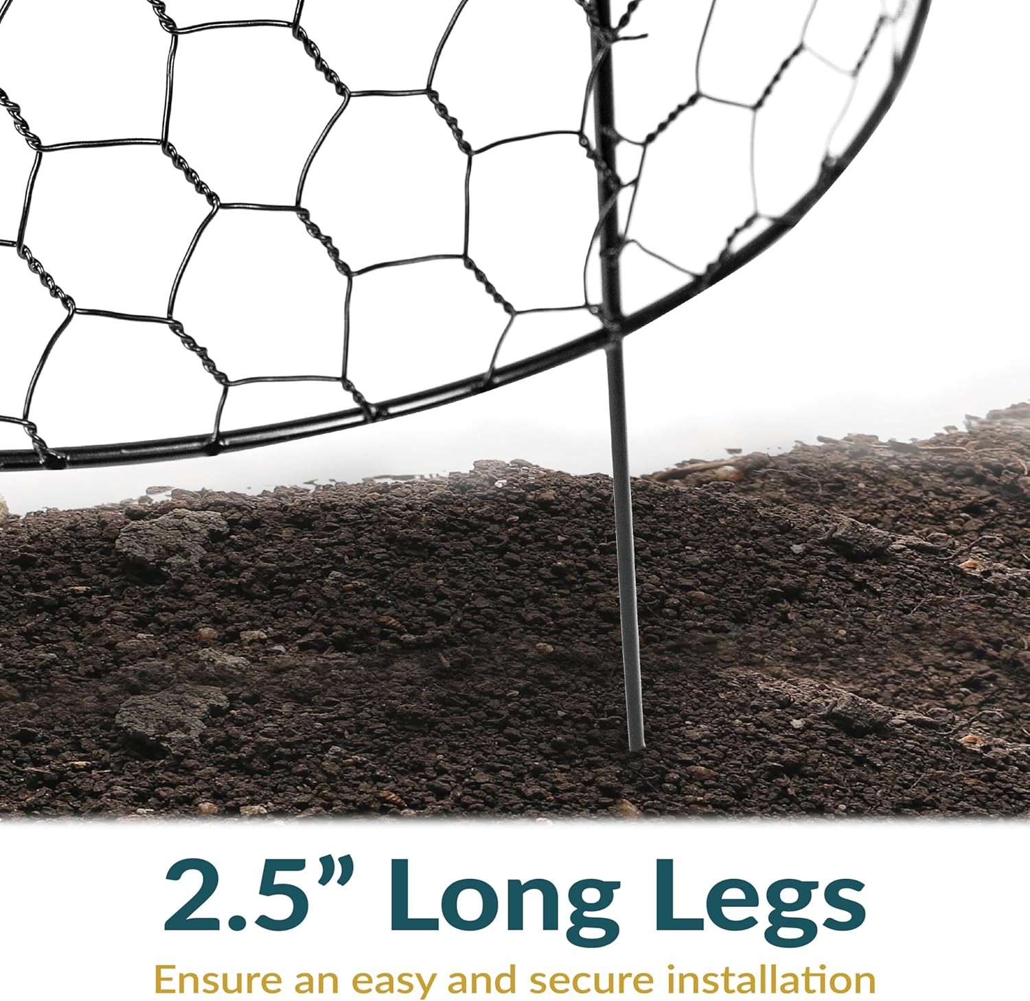 - ADJUSTABLE FOR GROWING PLANTS: This set includes 6 chicken wire cloches. Each plant protector has a bottom diameter of 12" round and a top opening of 6.75" round. It has an overall height of 18" H (14.75" H without top). It has an in-ground height of 15" H with the top cap (12" without the top cap). The legs measure 2.5" long. Featuring a bell shape and removable cap, this cloche is designed to accommodate plants as they grow by allowing room for leaves and branches.