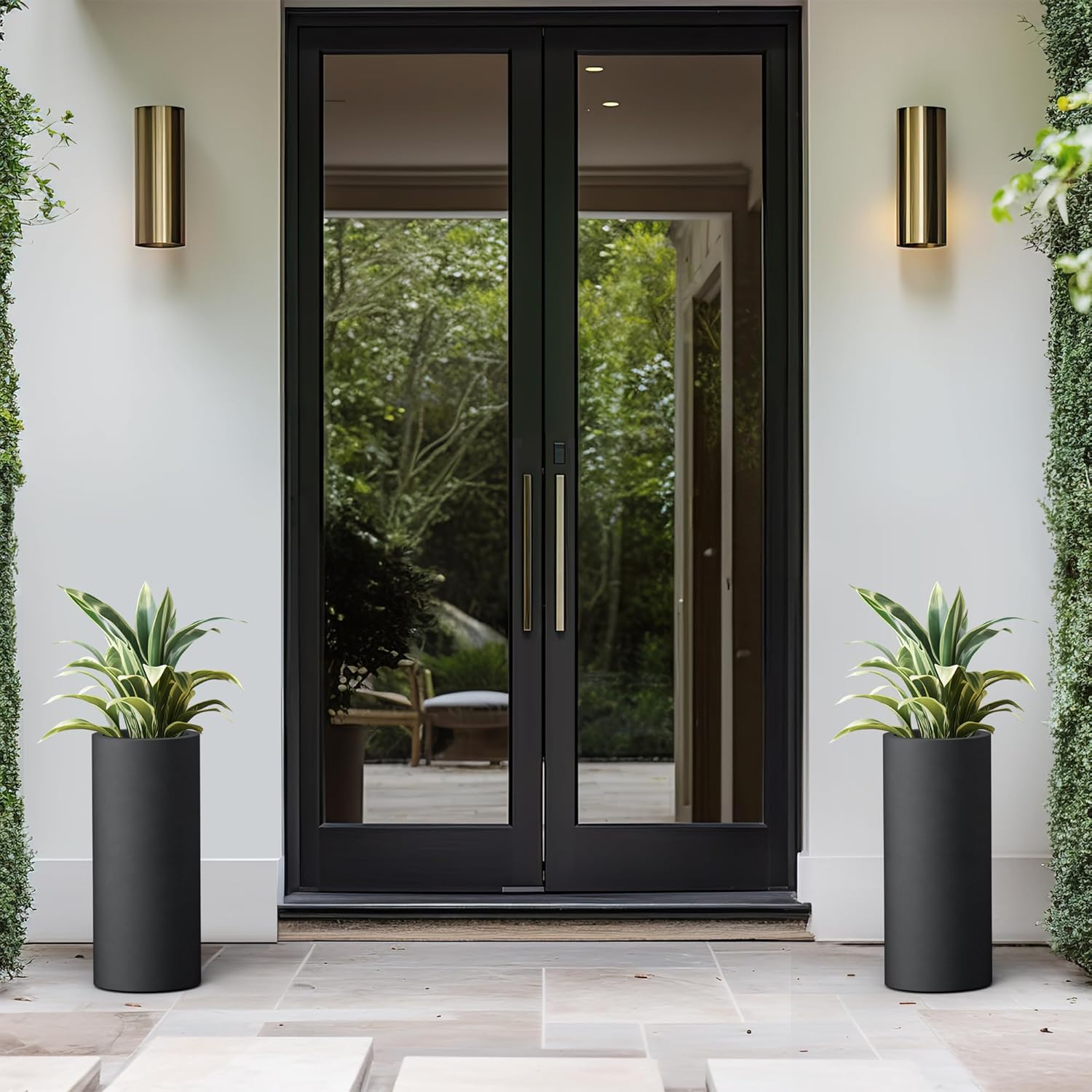 Kante 18.9 Inch Tall Cylindrical Planter, Large Round Plant Pots with Drainage Hole, Made with Concrete, Suitable for Indoor Outdoor Plants, Home Decor, Black