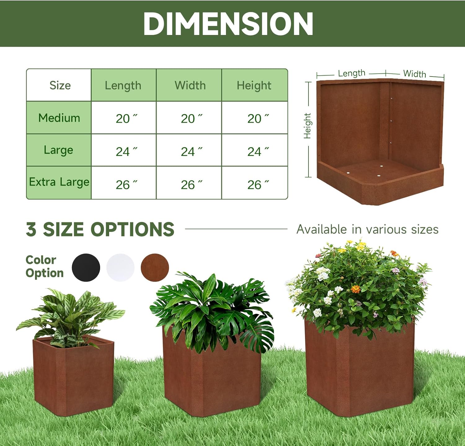 - 【Material And Size】: Corten steel planter box size 26"L x 26"W x 26"H, made of high quality corten steel, strong and durable, anti-deformation and corrosion resistance, 30+ long service life.