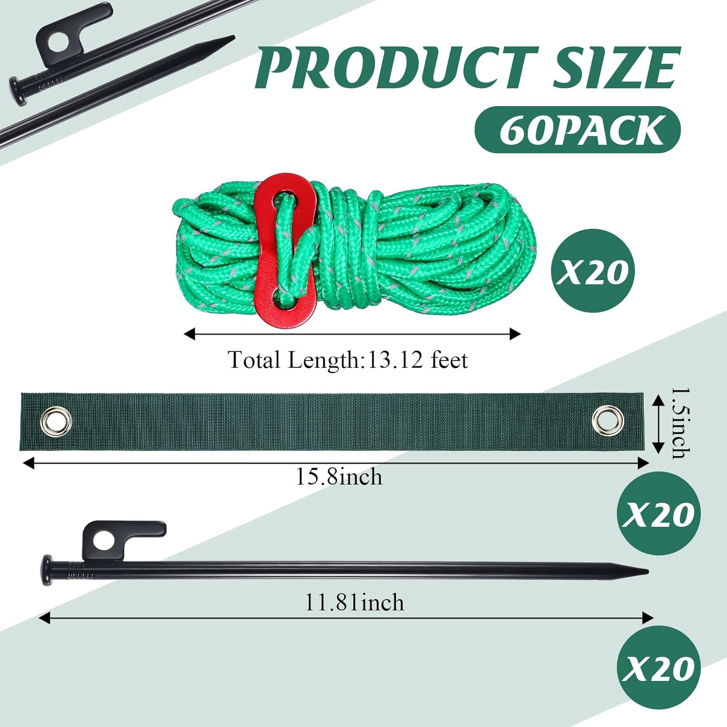 - Complete 60 Pcs Stump Kit: the tree stake kits include 20 pieces of 11.8 inches metal stake, 20 pieces of 15.8 inches support straps, and 20 pieces of 13.12 ft strong rope, complete accessories of large quantity contain everything you need for tree supporting or straightening, so you don't have to buy any extra accessories